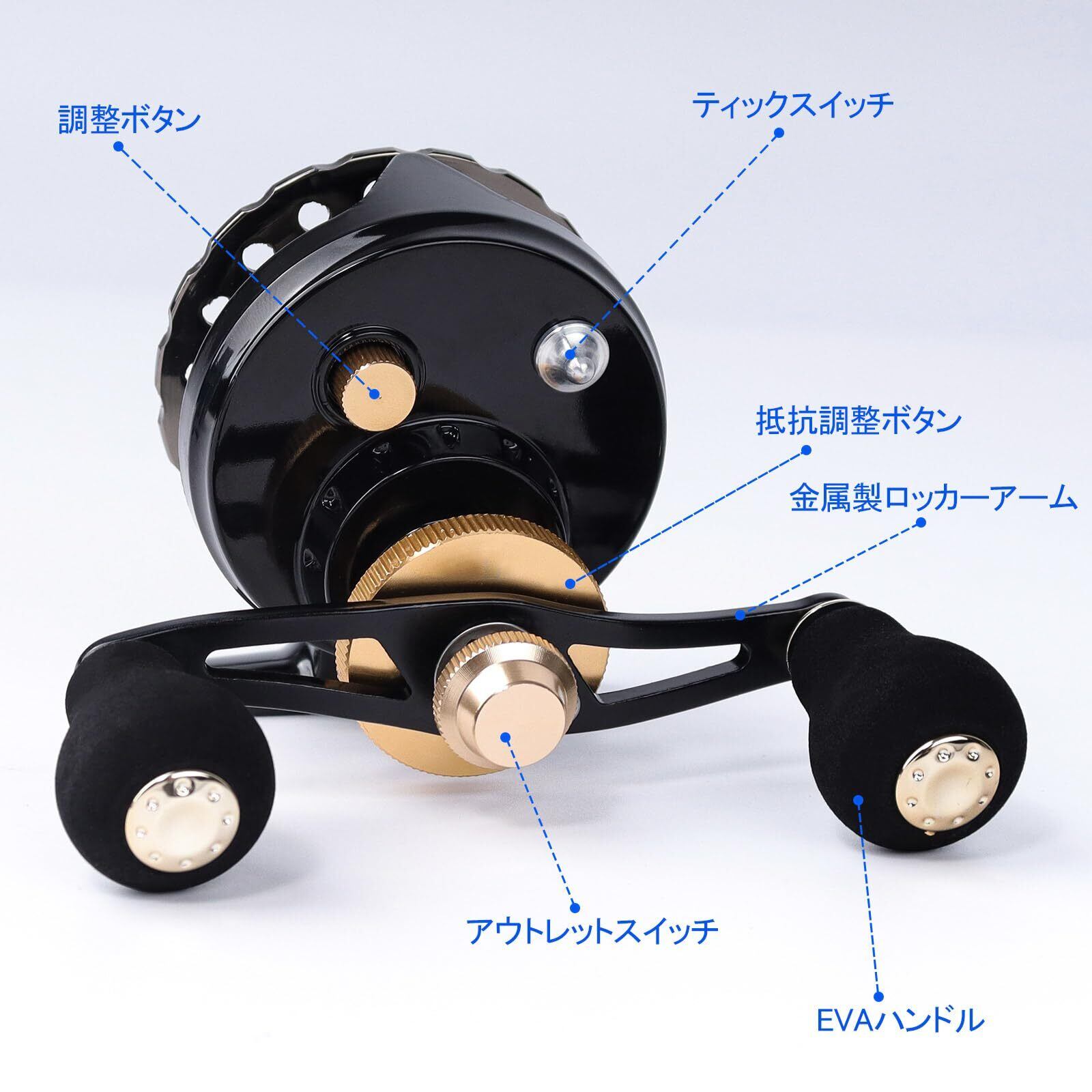 【耐久性】筏釣 リール本体は優れた金属で作られて、金属酸化処理したのドライブギヤーがあります。強度が高く、錆びにくいです。