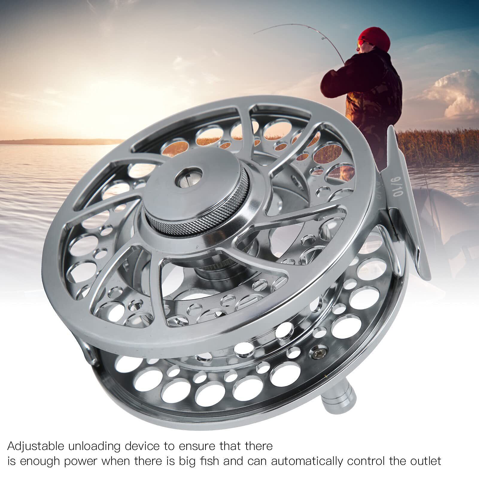 9/10フライリール 9/10フィッシングフライリール3ボールベアリング1:1ギア比CNC アルミニウム合金フィッシングリールフィッシングアクセサリー 調整可能 アンロード耐久 長時間使用