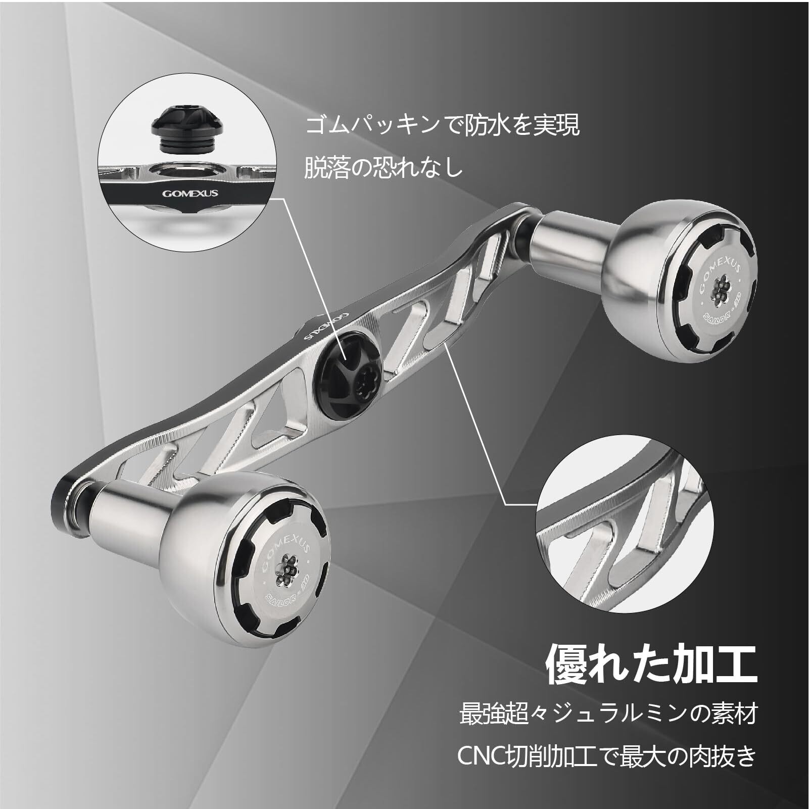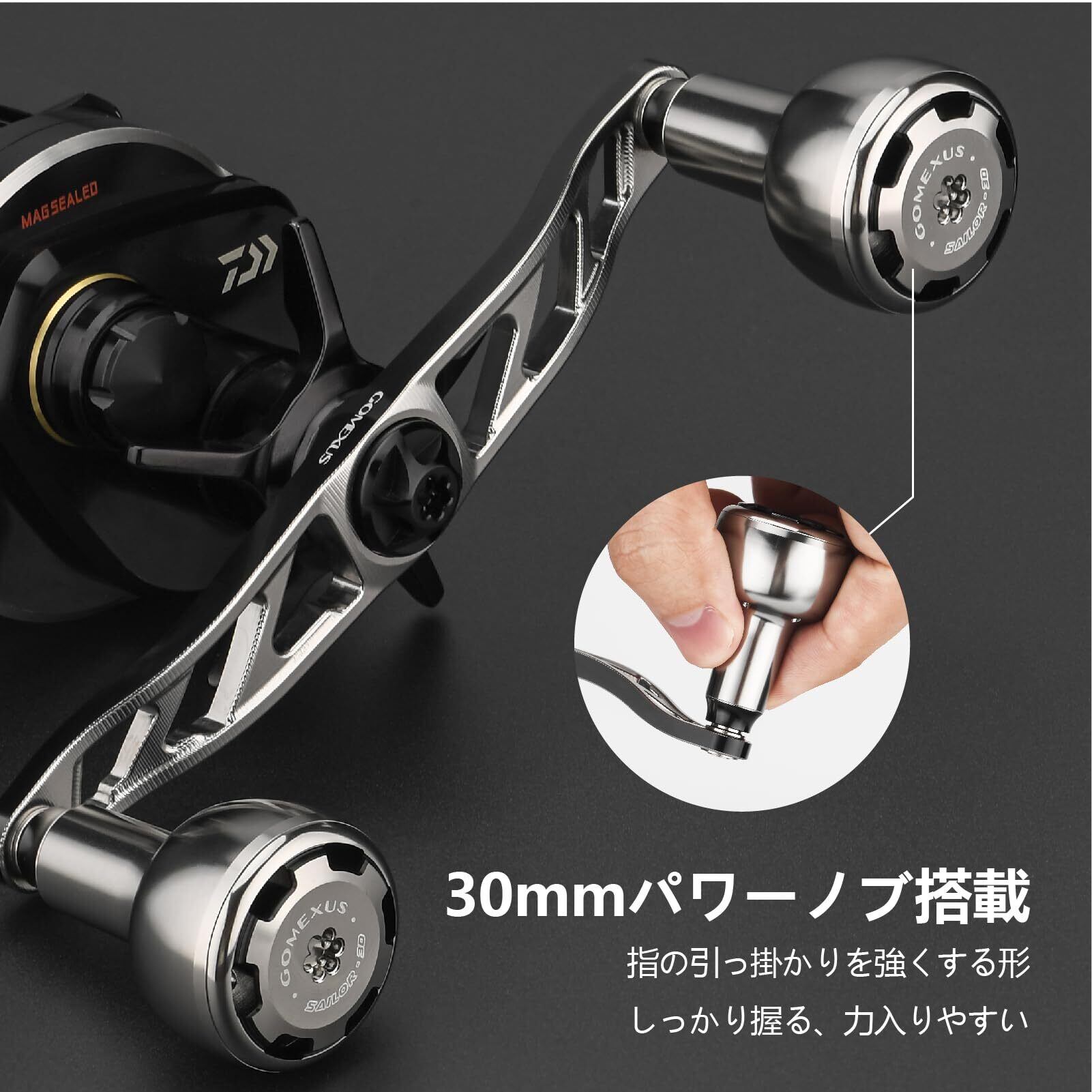 ゴメクサス CH120 パワーリールハンドル ダイワ (Daiwa) シマノ (Shimano) ベイトリール対応 ダブルハンドル シーボーグ ソルティガIC 専用 両軸リール ハンドル交換 全長120mm 30mmハンドルノブ付き ディープタイラバ ジギング 青物 釣り 左右兼用