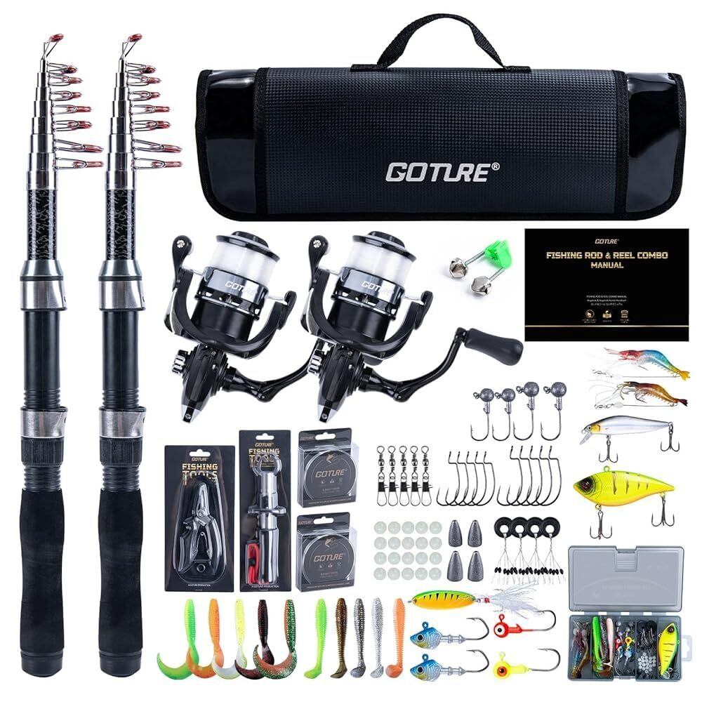 「Goture 釣りセット」は、釣りをこれから始める方や家族でのアウトドアを楽しむ方に最適なフルセットです。2.1メートルの炭素製伸縮釣竿2本、釣り糸、スピニングリール2台と充実のアクセサリーが揃っており、投げ竿から振出ロッドまで対応できる多機能なセットです。川、海、穴釣りや磯釣り、淡水での釣りにもご利用いただけます!