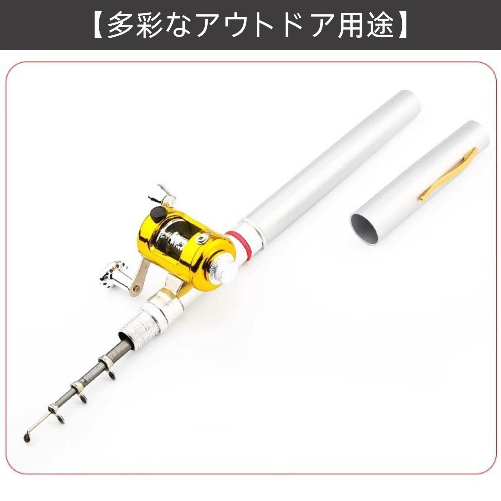 HOTQ 釣竿 リール付 リール付きロッド 簡易釣り竿セット【釣りミニ伸縮式 ペン型ロッド】