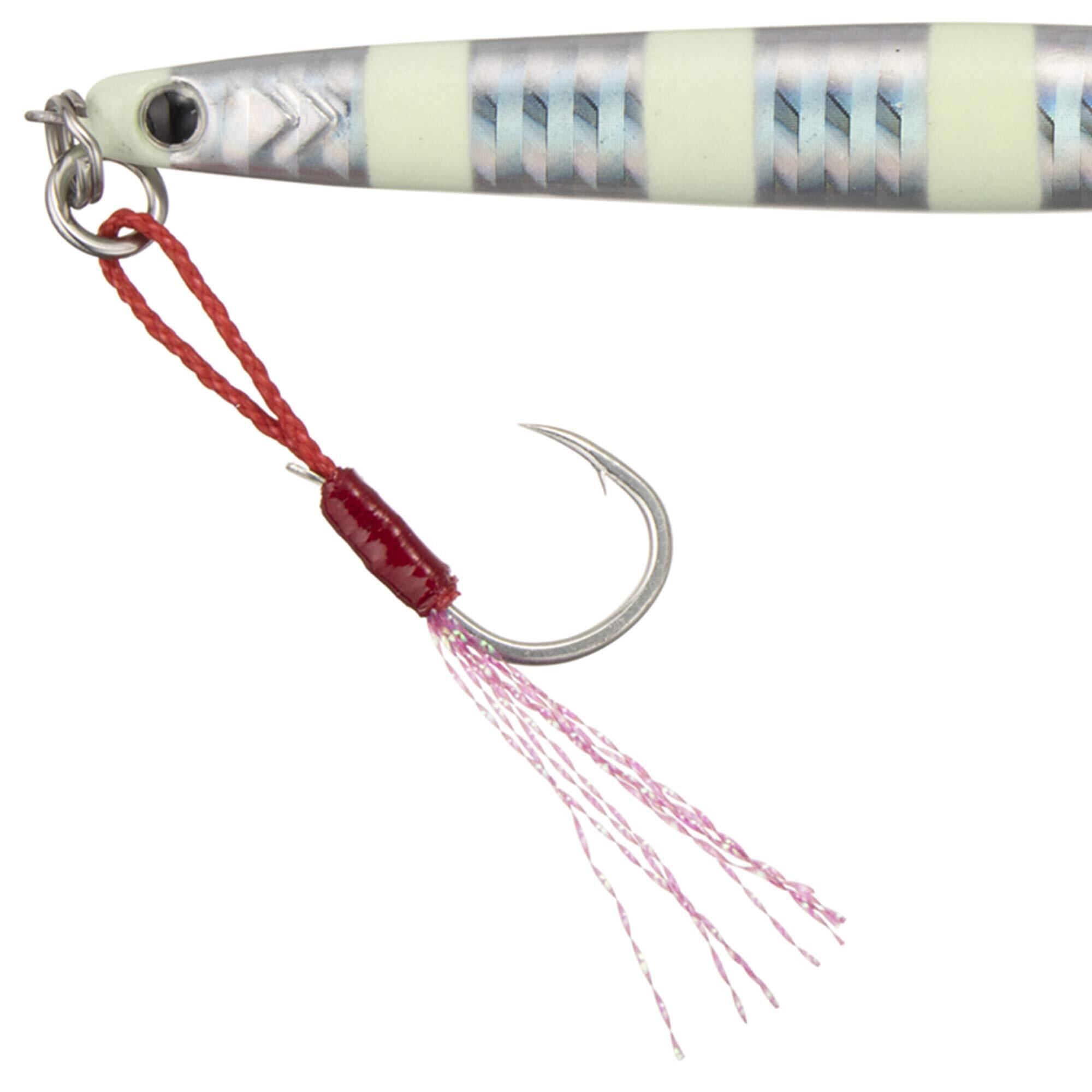 マイクロベイトなどの動きの遅いベイトに着いたターゲットにはJIGが通用しない場合があります。そんな時に最も有効なのがブレード付きジグ。あえてジグの動きを制御し、ブレードのフラッシングと微波動だけでヒットに持ち込める「巻くだけジグ」でマイクロベイトパターンを攻略してください。サバやサゴシ・サワラといったリアから食いつく魚や、根魚・マダイなどの鯛ラバで釣れる魚にも効果抜群!ターゲットを選ばない巻くだけジグ「マキジグ」でショアジギングからススーパーライトジギングまで楽しめるでしょう。