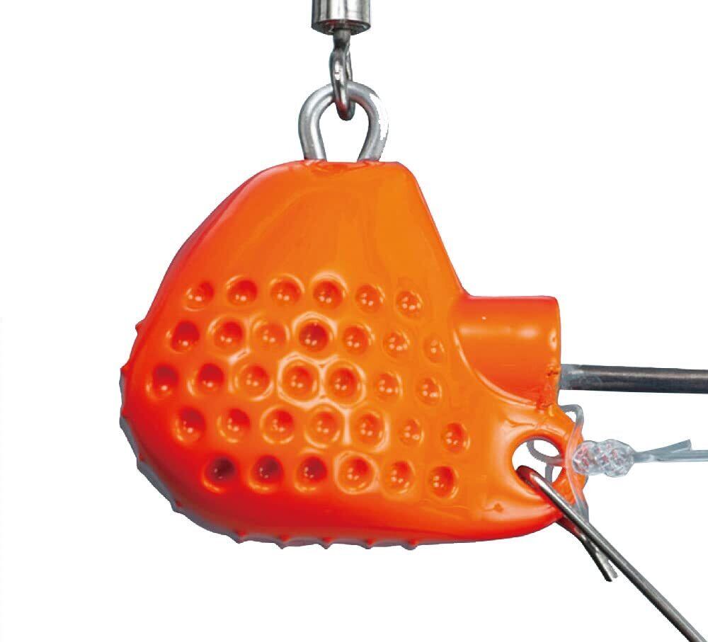 ヘッドに高比重タングステンを採用した「桜幻 鯛テンヤTG」が登場! 高比重タングステンの採用と重心位置の徹底検証により急速フォールを実現。着底時にはテンヤ底面に設けられた「ボトムタッチバンパー」によりボトムでの接地面積を減らし、クリアな着底感を実現。ヘッド側面のディンプル加工は、凹凸による明暗効果と誘いの際の高いフラッシング効果により広範囲の真鯛を魅了します。親鈎は度重なる実釣により導き出した、即アワセに最適な鈎先角度「ゼロアングル」を採用し、コンタクト性を重視した孫鈎と相まってフッキング率を実現します。さらに、エビをしっかり固定でき、素早く脱着可能な「ワンタッチエビキーパー」の採用によりエビのズレを防止することで手返しの良い釣りを展開できます。