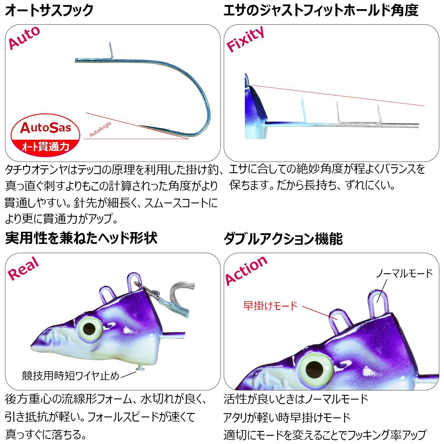 このテンヤは、太刀魚を魅了するための独自のアクション設計が施されています。動きが自然であるため、魚に違和感を与えず、確実にバイトを促します。さまざまな水深や潮の流れに適応することができ、フィールドでの信頼性を高めます!