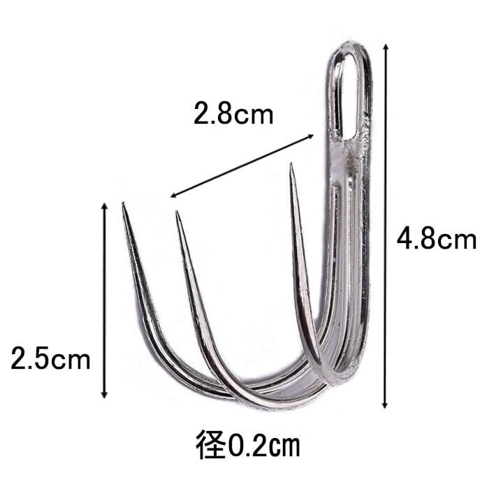 伊勢海老 がより掛かりやすくするため線径を0.2cmにし、若干外側に針が向くように設計した掛かり抜群の 3本針 !