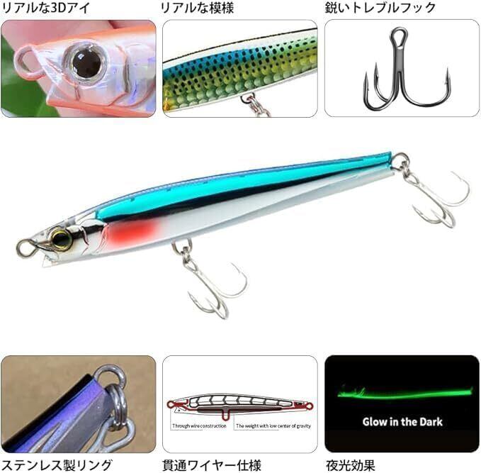 ハードルアー シンキングペンシル 95㎜ 40g 6色 + ルアーケース付き 青物 ヒラメ ヒラスズキ よく飛ぶ