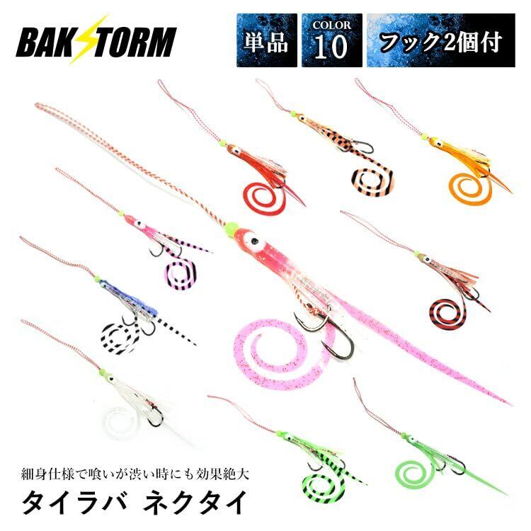 タイラバ ネクタイ ミニタコベイト 長さ14cm 単品1個 5個セット・全色10個セットから選べる スカート 交換用 針 フック2個付 スパイラル PE 丈夫 BAKSTORM バクスト 釣り具 釣り針