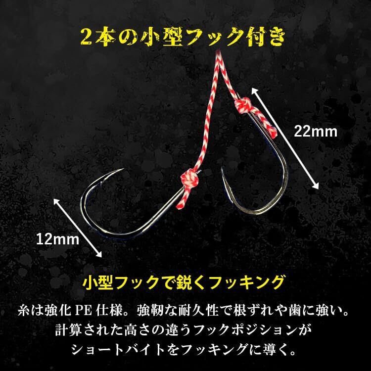 【タイラバ ネクタイ ミニタコベイトフック 2個付】漁師御用達、タコベイトがミニサイズ化しタイラバ用フックに進化。タイラバに欠かせない波動を生み出すカーリーテール。取り外し可能な夜光ビーズ、アマダイ等の中深海ターゲットにも大活躍。小型フックで鋭くフッキング。根ずれや歯に強い計算された高さの違うフックポジションがショートバイトをフッキングに導く。細身仕様で喰いが渋い時にも効果絶大。カーリーテールがスパイラルな動きでバイトを誘発。リアクションバイトを発生させやすい波動を生み出す。