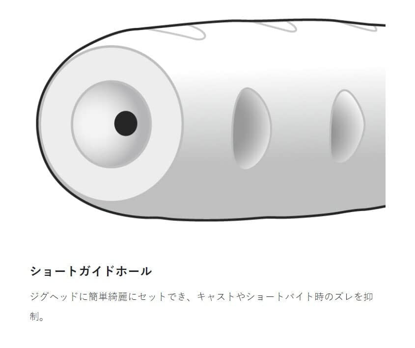 真円ボディの側面に4列のディンプル(凹み)を持つピンテール系ワームです。ゴルフボールなどにも見られるディンプル構造は、空気や水に対して細かな渦流を作ることで安定した挙動を生み、飛距離を伸ばすことが知られています。4面にそれぞれ8つ、計32個のディンプルが、柔らかな水押しを纏わせることで小さなプランクトンや小魚のリアルな生命感を再現することを狙いました。優しい渦流を受けたテールはマイクロベイトの発する生命感を宿し、非常に細やかに動き、振動します。サーチからシビアな状況までターゲットを誘う、頼りになるワームです。