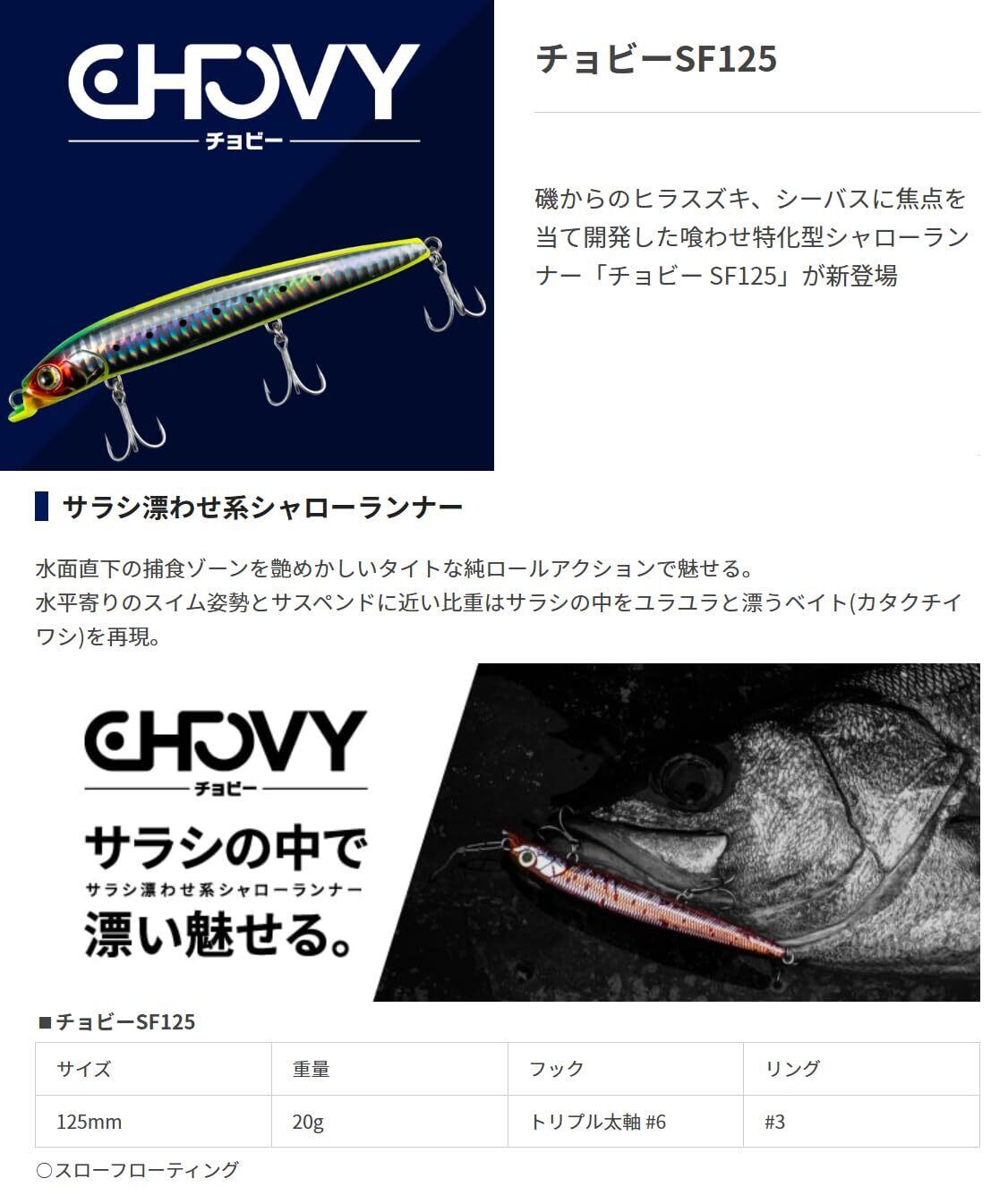 マリア(Maria) ミノー チョビーSF125 シーバス ヒラスズキ 磯