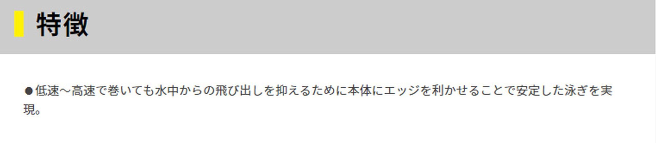 低速~高速で巻いても水中からの飛び出しを抑えるために本体にエッジを利かせることで安定した泳ぎを実現。
