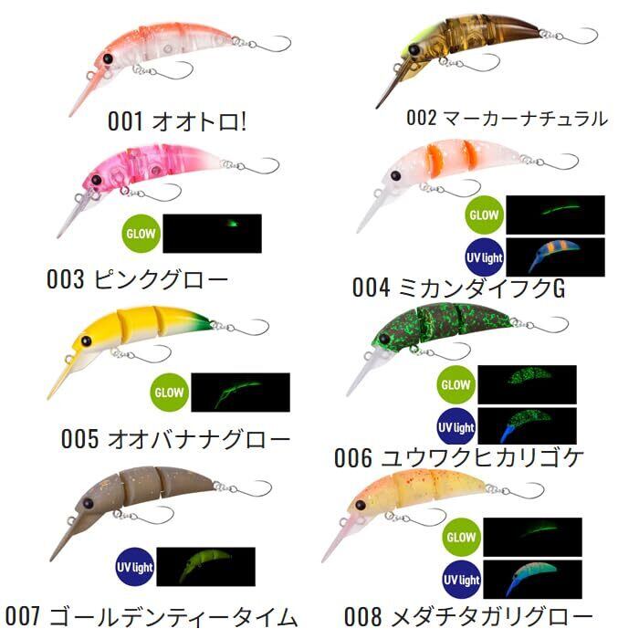 着水した瞬間から大粒サイズで存在をアピールし、よりレスポンシブになった3連結ボディは一定のスピードでトロトロと巻くことで艶かしさを増して魚を誘います。そしてトロトロ巻いているうちに不規則な喰わせのアクションに気付くことができたならトロイストまであと一歩。信じて巻き続ければ安定した釣果をもたらすジョイントクランクです。