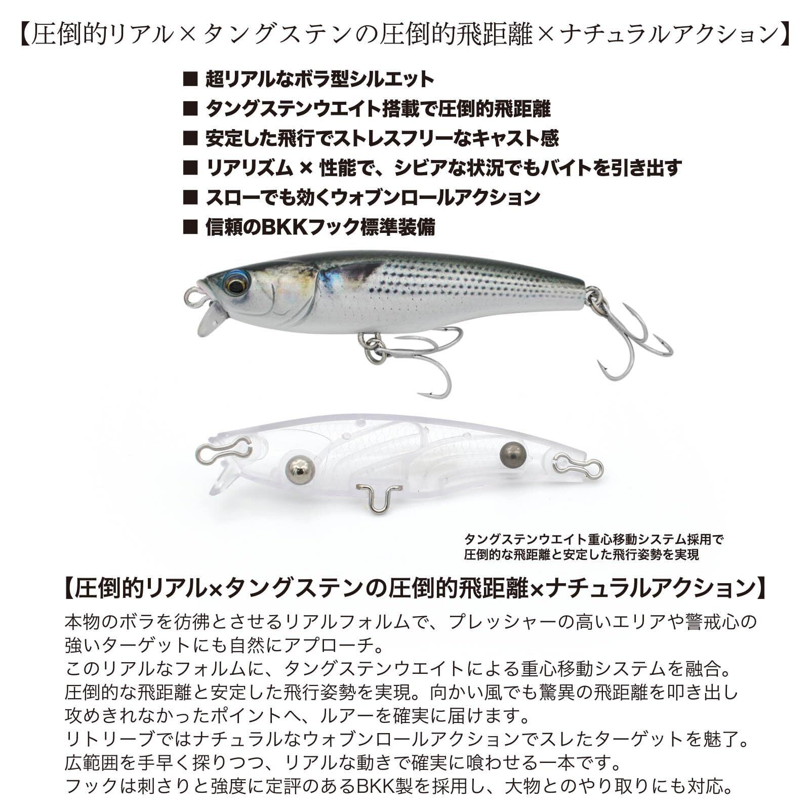 本物のボラを彷彿とさせるリアルフォルムで、プレッシャーの高いエリアや警戒心の強いターゲットにも自然にアプローチ。このリアルなフォルムに、タングステンウエイトによる重心移動システムを融合。圧倒的な飛距離と安定した飛行姿勢を実現。向かい風でも驚異の飛距離を叩き出し攻めきれなかったポイントへ、ルアーを確実に届けます。リトリーブではナチュラルなウォブンロールアクションでスレたターゲットを魅了。広範囲を手早く探りつつ、リアルな動きで確実に喰わせる一本です。フックは刺さりと強度に定評のあるBKK製を採用し、大物とのやり取りにも対応。