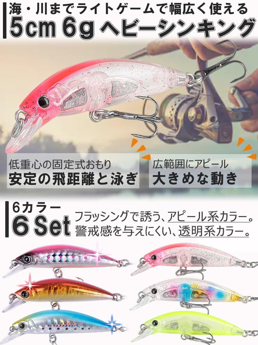汎用 ルアー セット ヘビーシンキング ミノー 5cm 6g メバリング トラウト