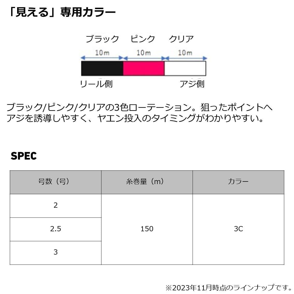 【10m×3色カラーローテーション】 ヤエン投入のタイミングをサポート。狙ったポイントへアジを誘導しやすい3色ローテーション。