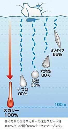 ◆スカリー Scurry ● ・今やオモリの定番。ありとあらゆる船釣りのシーンに欠かせないアイテムです。 これまでは経験的に作られてきた船釣り用オモリの分野に流体解析を導入。沈降時間の短縮と安定性の向上、巻き上げ時の流体抵抗軽減を図りました。 その成果は、さまざまな条件下での沈降テストで実証されました。