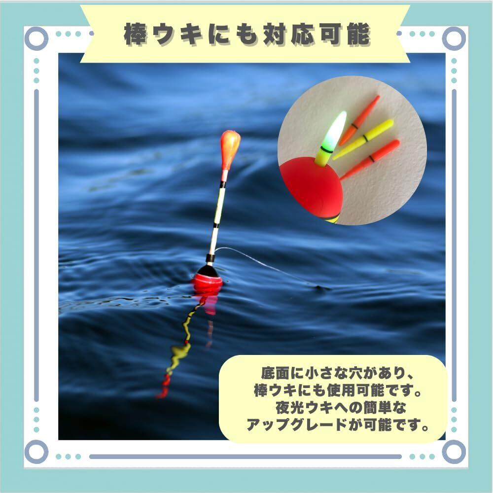 【棒ウキにも対応】底面に小さな穴があり、棒ウキにも使用可能です。夜光ウキへの簡単なアップグレードが可能です。