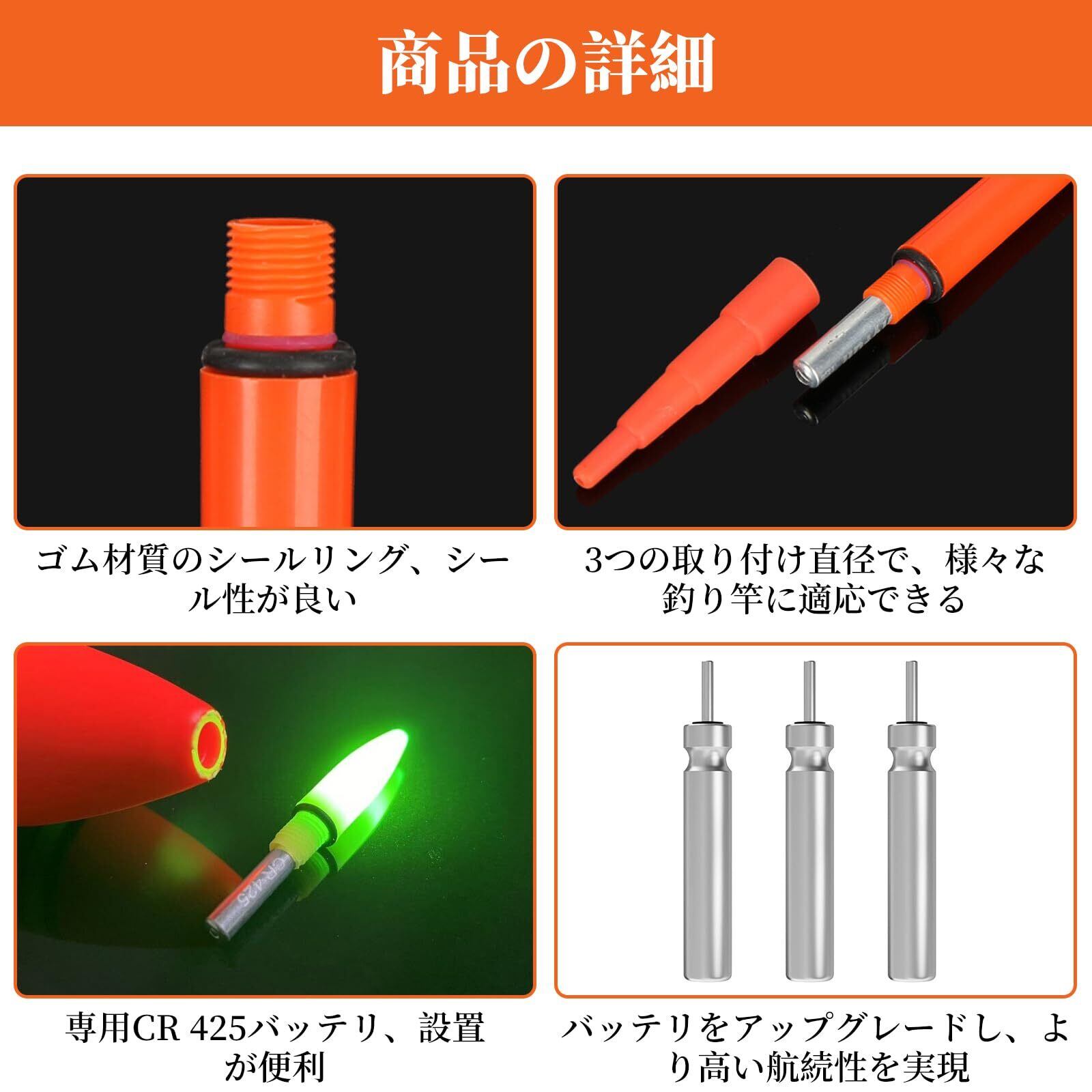 【パッケージ内容】赤4緑4, 8ピースセット、10ピンリチウム電池CR425 電池式ウキなので、電池を交換することで釣り用の光るウキとして長時間使用することができます。