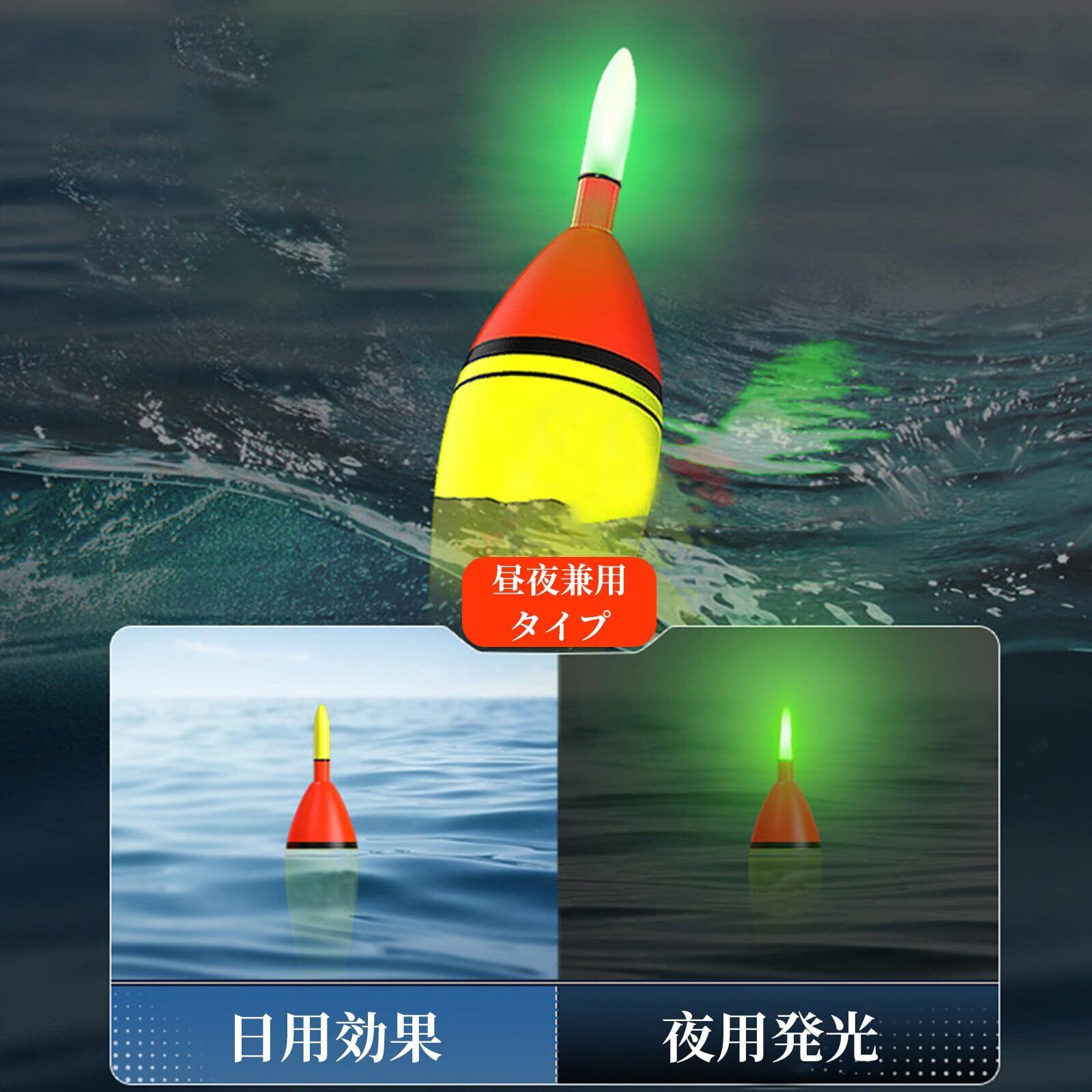 【高品質素材】電気ウキは高品質のプラスチック素材で作られ、頑丈で耐久性があり、壊れにくく、耐用年数が長いです。 ハタハタ、サバ、シマアジ、リュウグウノツカイ、浮き魚、チヌ、イカ釣りに最適で、長期間安定した性能を提供します。