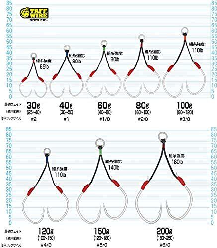 ツバス・ワカシから離島デカマサまで! ショアジギング完全対応!!特徴1【ウェイト表示式です! ! 】ジグメーカーを問わずご使用いただける、対応ウェイト表示です。特徴2【ファイアフックでフルカバー】サーフ・湾岸から、沖磯の10キロオーバー青物まで、ジグ重量30g~200gクラスをフルカバーします。特徴3【撃投DNA由来、ショア青物ノウハウ導入】「絡み防止」「飛行姿勢」「ジグ挙動」「ランディング耐久性」等、ショアジギングで求められる要素を追求。※組糸は通常よりハリとコシを持たせています。※フロロカーボン内蔵です。※飛行姿勢を安定させ飛距離を伸ばす設定です。※撃投シリーズを設定の基準としてあります。※オフショアでも問題なくご使用いただけます。