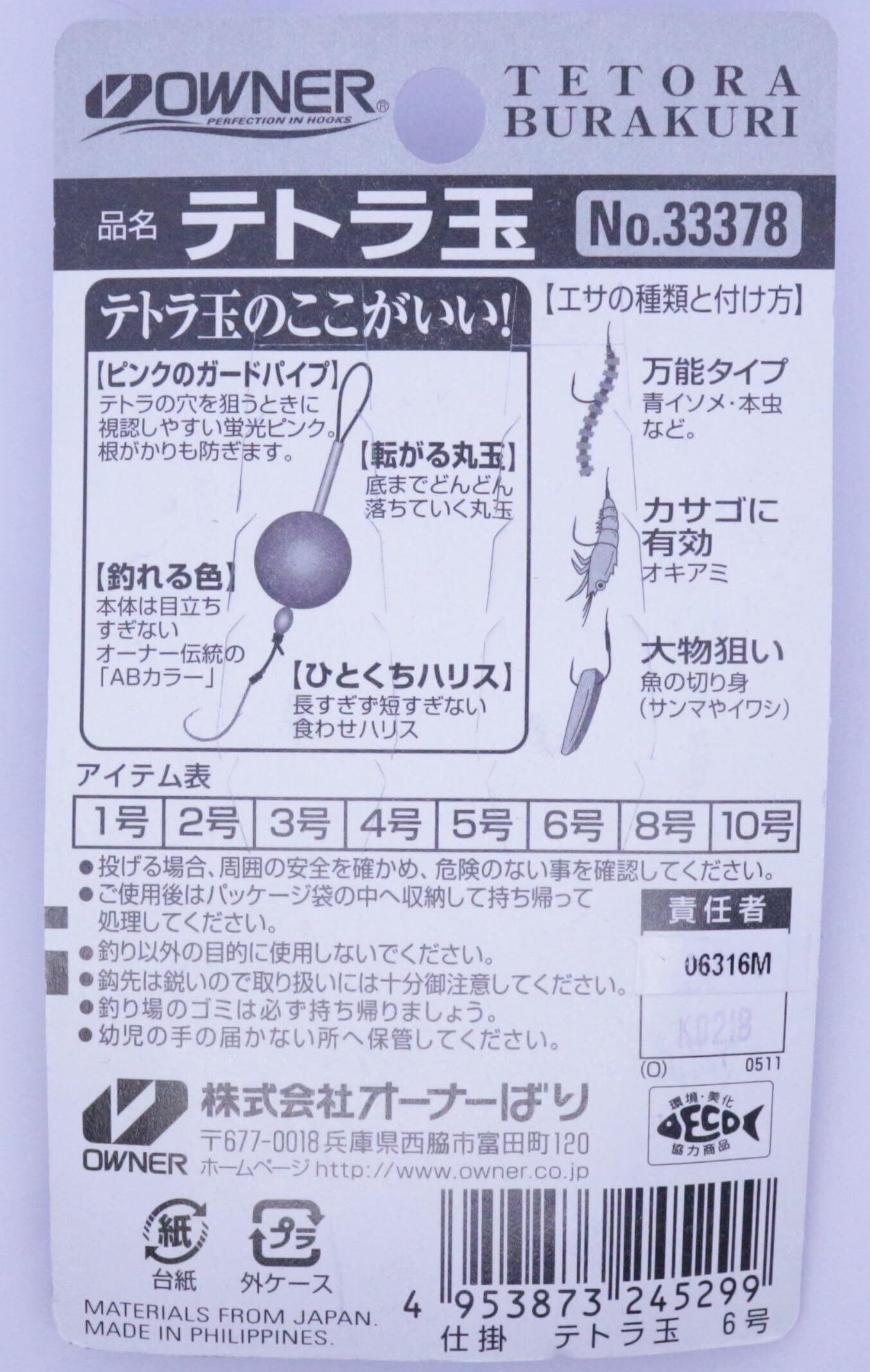 オーナー(OWNER) テトラ玉 1 No.33378(B-3378)
