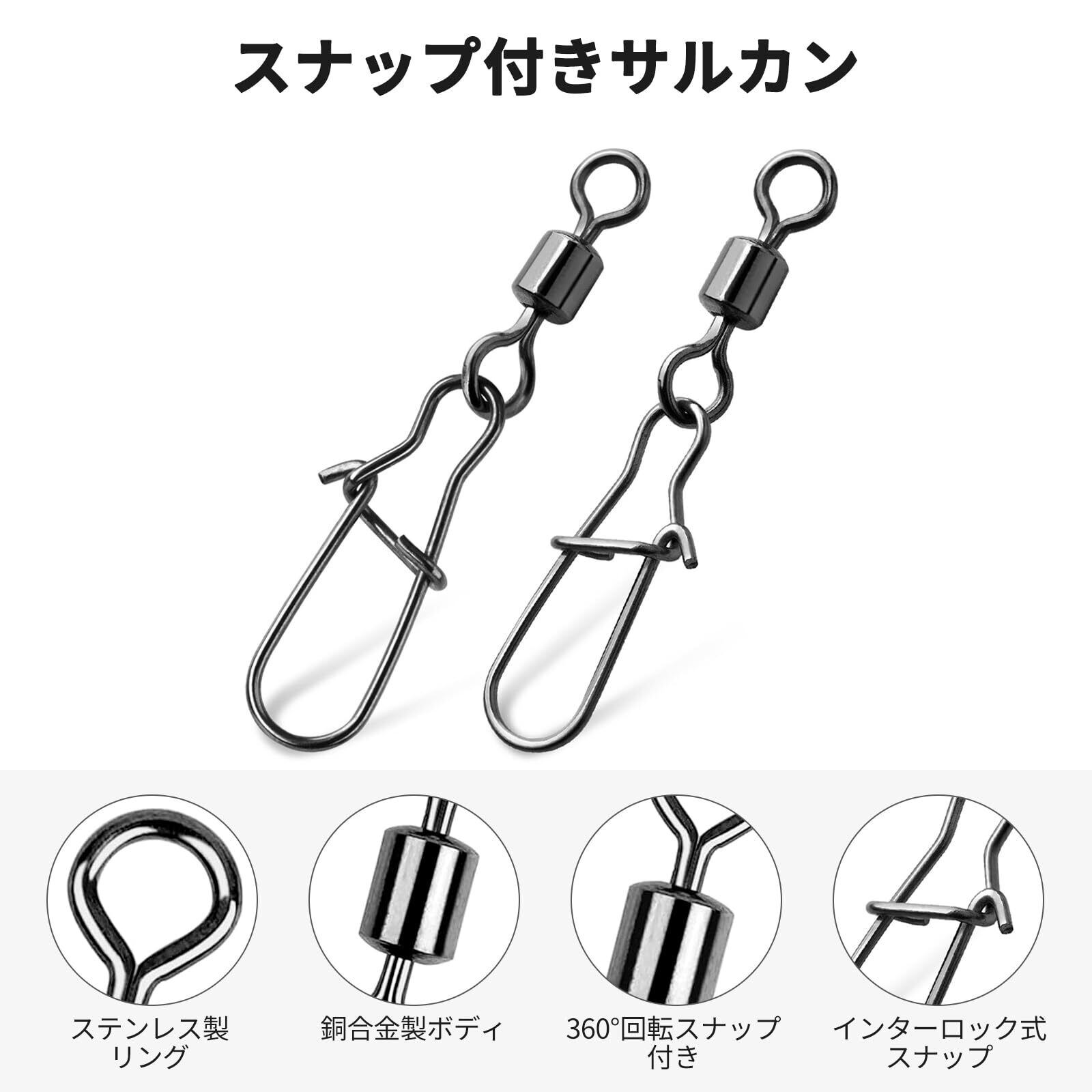 【発送の注意】当方は注文自動発送システムを採用しているため、購入から自動で2-3日でお届けとなります。本州以外や離島に関しては、商品によっては配送不可になる場合があります。この「【50個セット】釣り ストロングスナップ付きスイベル マルチサイズセット」をぜひ体験してください!