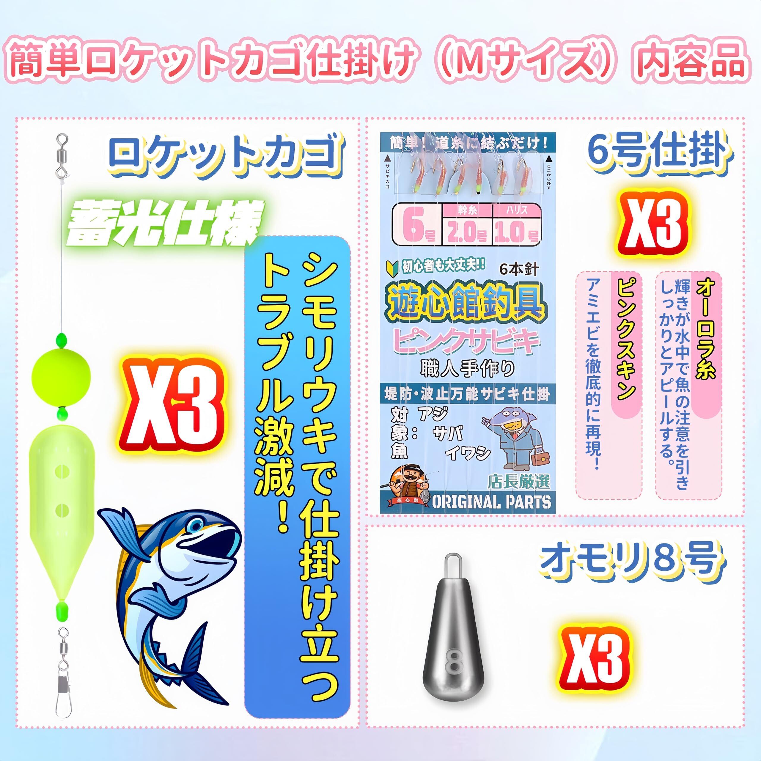 遊心館釣具 簡単ぶっ込みサビキカゴ 3サイズ (透明/蓄光) サビキカゴ ロケットカゴ 遠投カゴ釣り サビキ釣り