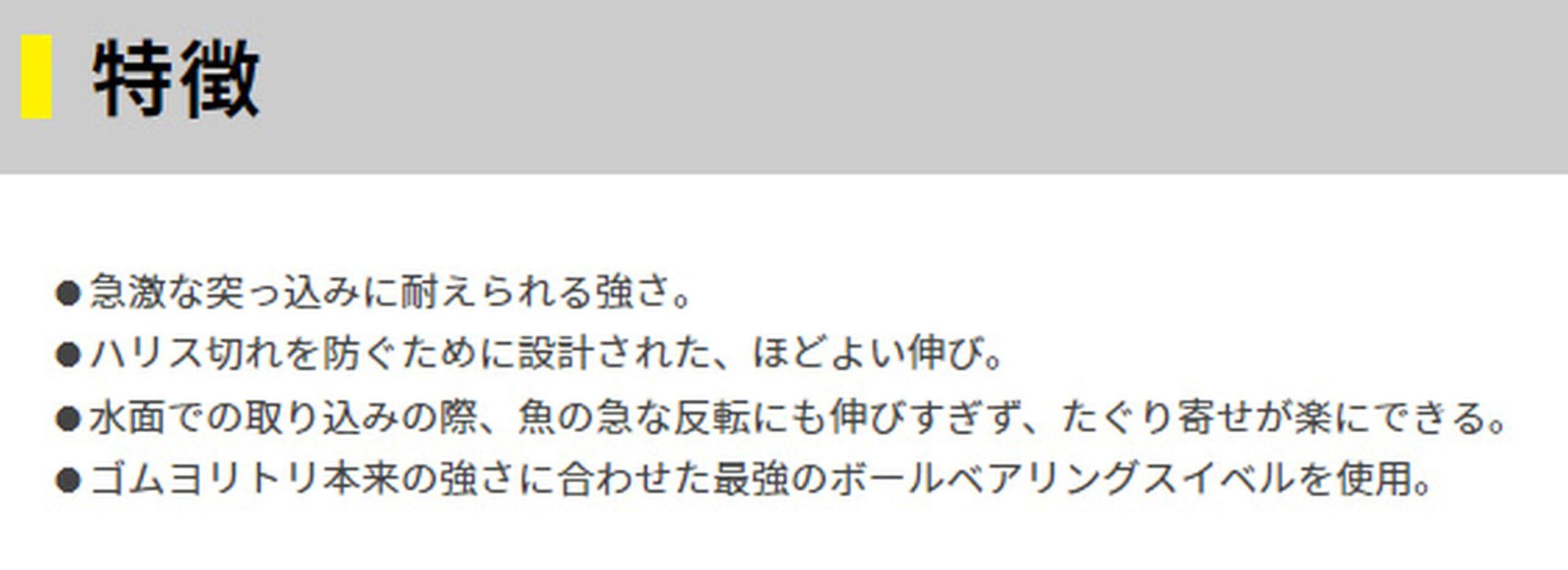 「ヤマシタ(YAMASHITA) クッションゴム 厳選ゴムヨリトリ 青物」は、青物釣りを愛する皆様に向けて開発された、高品質なクッションゴムです。厳選された素材を用い、高い耐久性と弾力性を兼ね備えているため、安心して長時間の使用ができます。