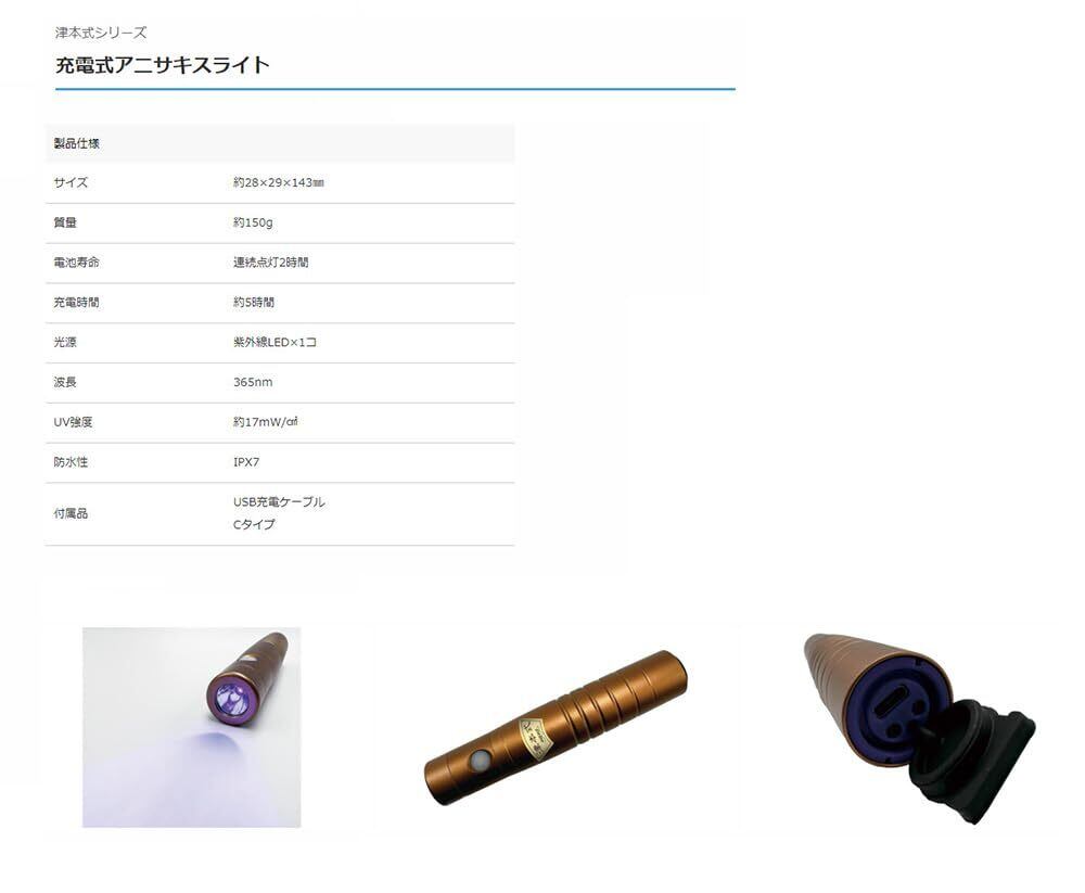 津本氏監修”津本式シリーズ"より、アニサキスを探し出し、照らしだすことに特化した"ハイパワーブラックライト(UVライト)"【アニサキスライト YF-980】から【充電式(USB充電Cタイプ)】が登場!!