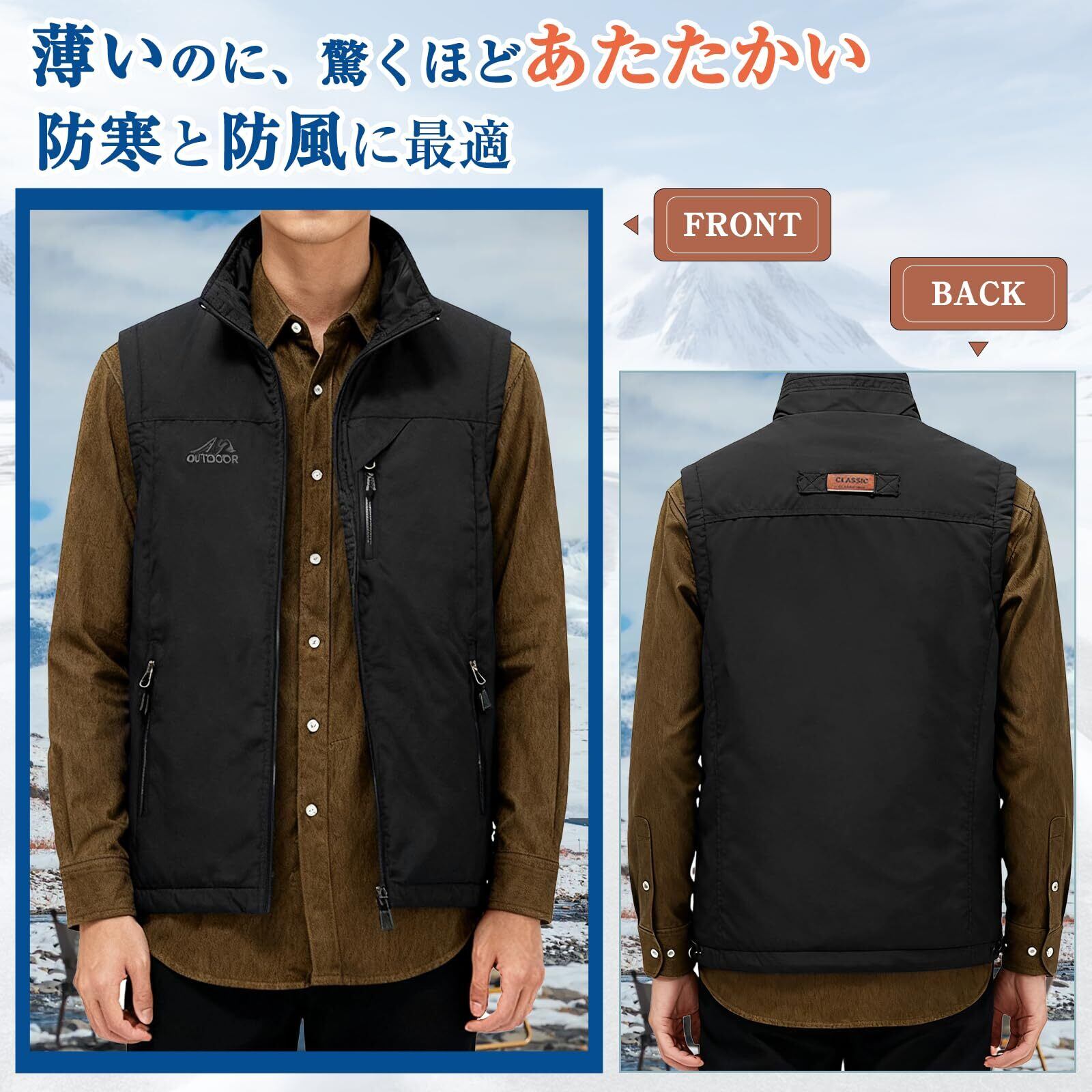 [Kayiyasu] ベスト メンズ アウトドアベスト フリースベスト 裏起毛 防寒 立ち襟 フィッシング 多機能 お釣 登山 大きいサイズ 通気性 速乾性 秋冬 S-5XL
