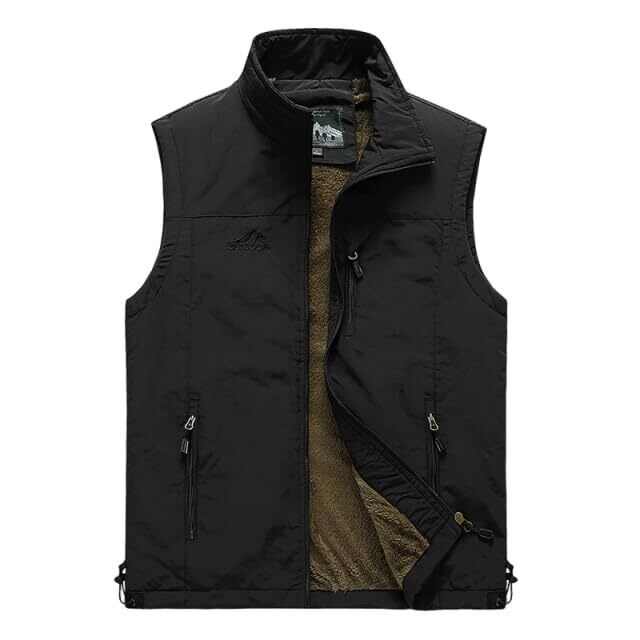 【実用的なフィッシングベスト】両サイドにファスナーポケット2つ、胸ポケット1つ、内側にはマジックテープ付きポケット1つを装備。釣り道具や登山小物、スマホや貴重品も安心して持ち運べます。スムーズなジッパーで着脱しやすく、立ち襟が首元をしっかり防風。さらに裾のドローコードとパイピング仕上げにより、防寒性・耐久性・美しさを兼ね備えています。