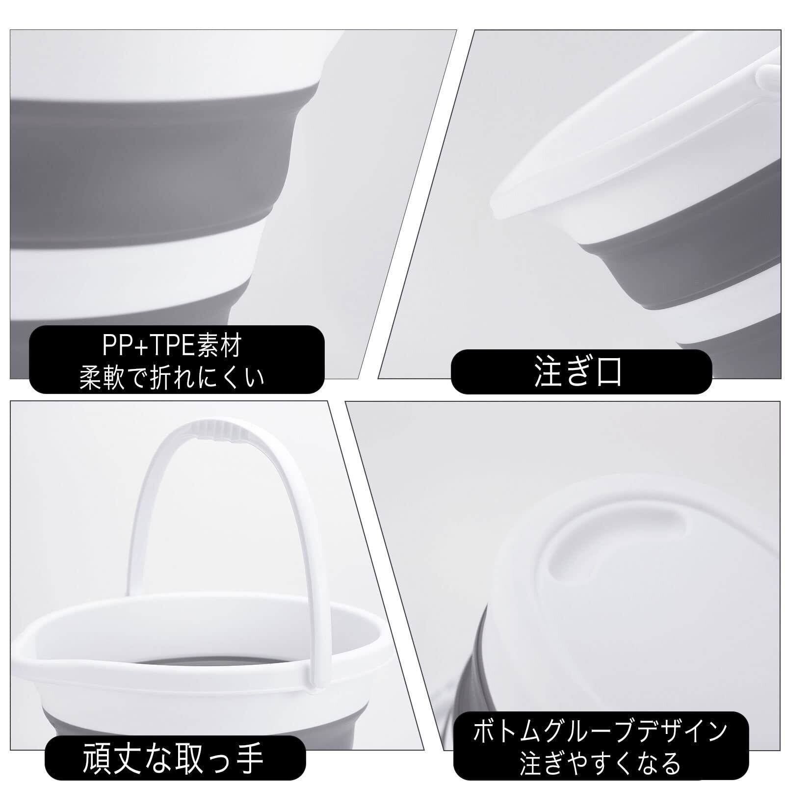 【省スペース】拡張サイズ:21.5cm(直径)×21cm(高さ)、折りたたんだ後の高さはわずかな5.5cmで、収納時のスペースを70%以上節約できます。 複数のバケツをご利用いただける場合、一緒に積み重ねて収納でき、コンパクトで場所を取りません。
