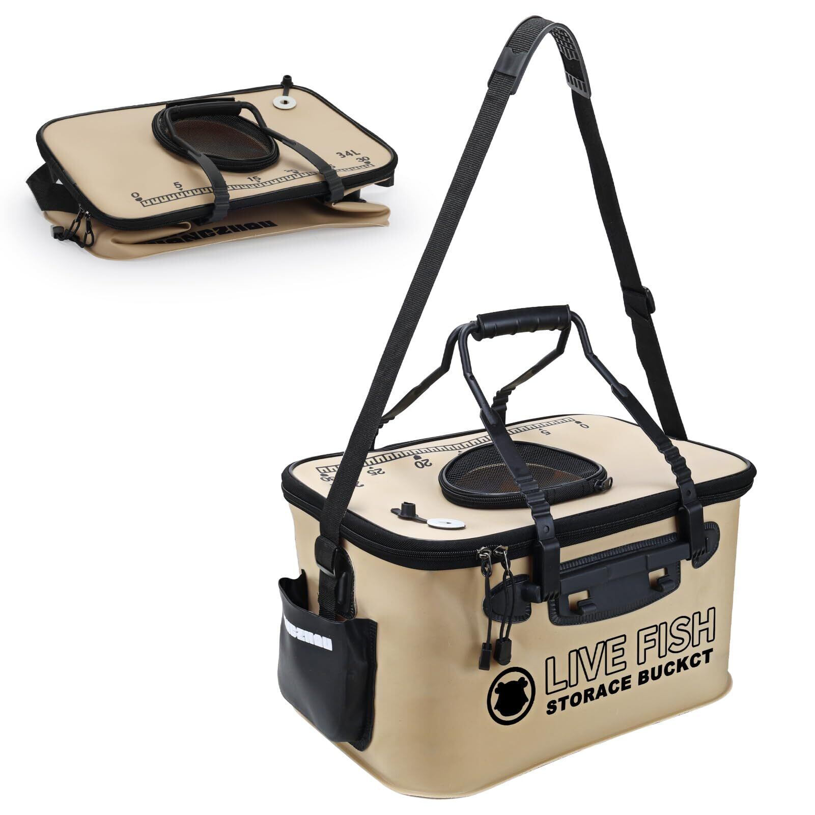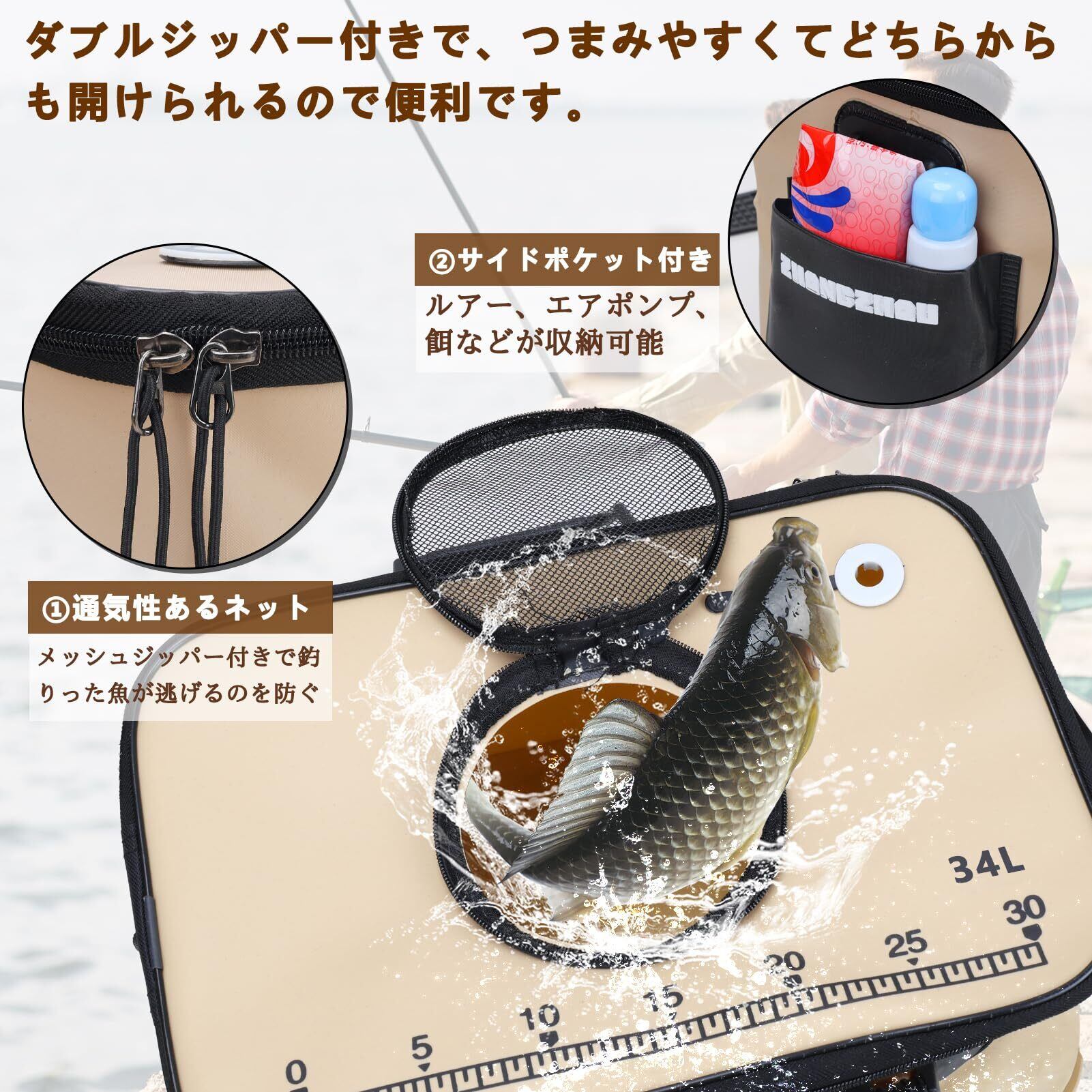 【通気メッシュ蓋で鮮度キープ】メッシュジッパー付きフタで開閉自在!魚の飛び出し防止&エサ投入がスムーズ。空気循環により生きたまま保管可能。サバ・ニシン・カニなどの鮮度を長持ちさせます。