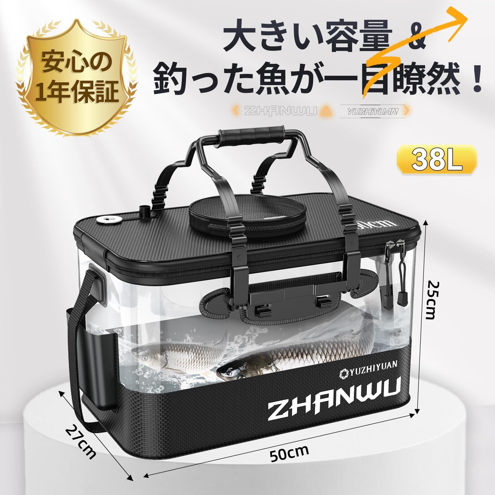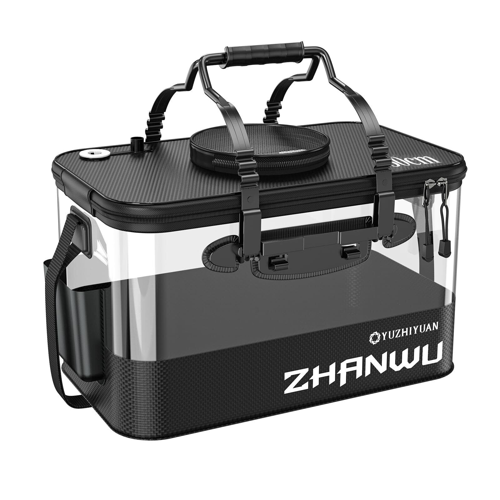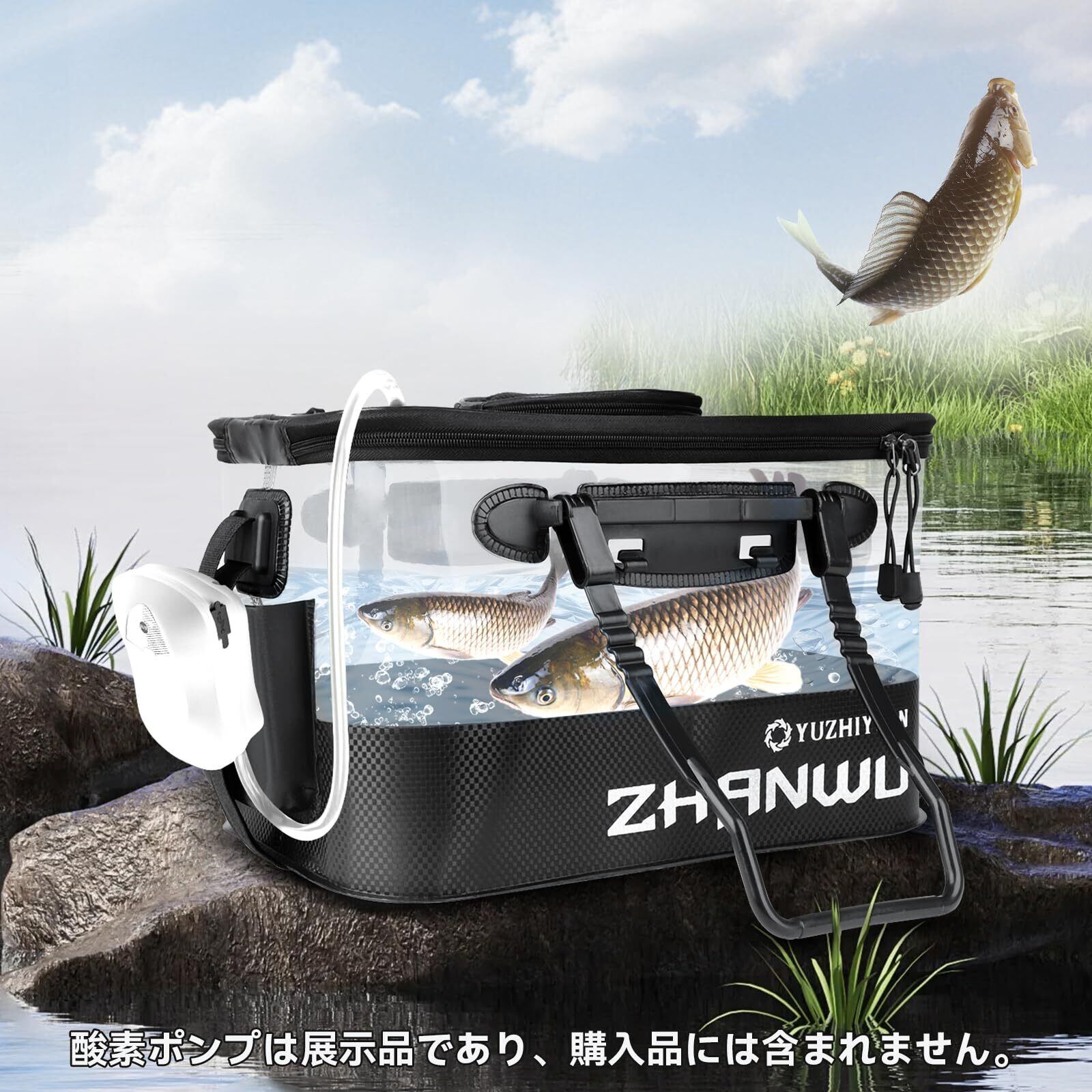 釣り バケツ折りたたみ式 50cm透明バケツ - 魚が一目瞭然 - 軽量で操作が簡単なフィッシングツール、ジッパーの蓋付き - キャンプや釣りの日のより良い選択