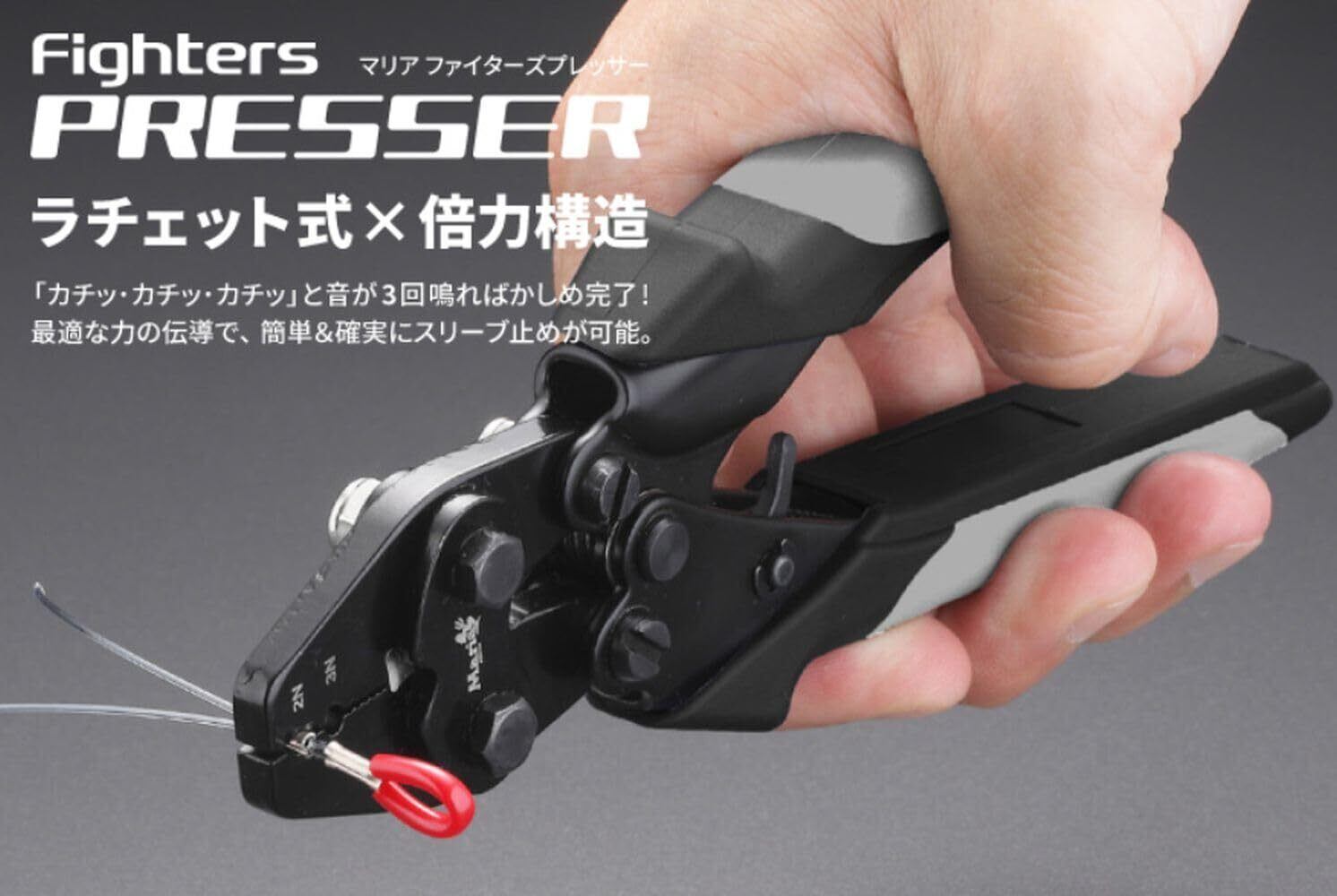 ラチェット式×倍力構造 「カチッ・カチッ・カチッ」と音が3回鳴ればかしめ完了! 最適な力の伝導で、簡単&確実にスリーブ止めが可能。