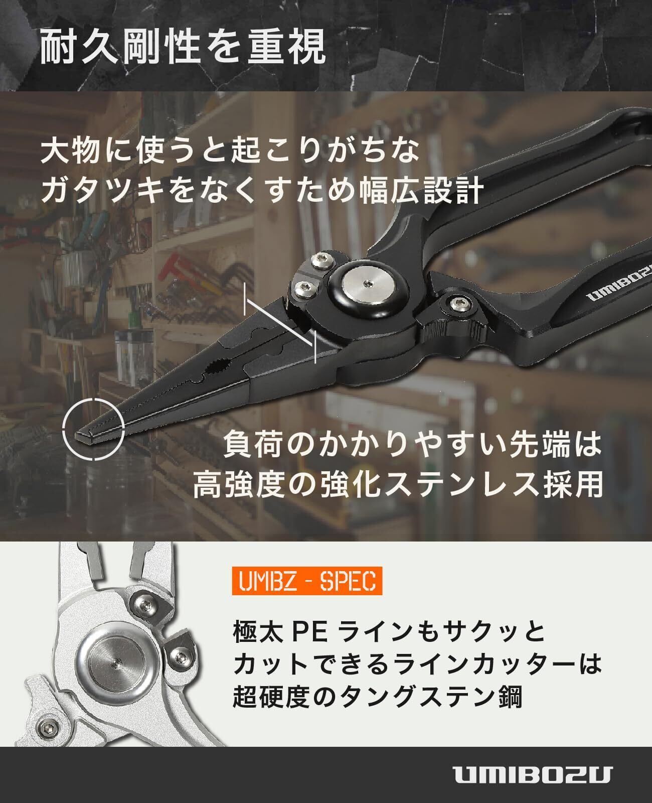 Umibozu(ウミボウズ) フィッシングプライヤー 大型 ロング 強度 防錆 針外し 国内 (マットブラック)