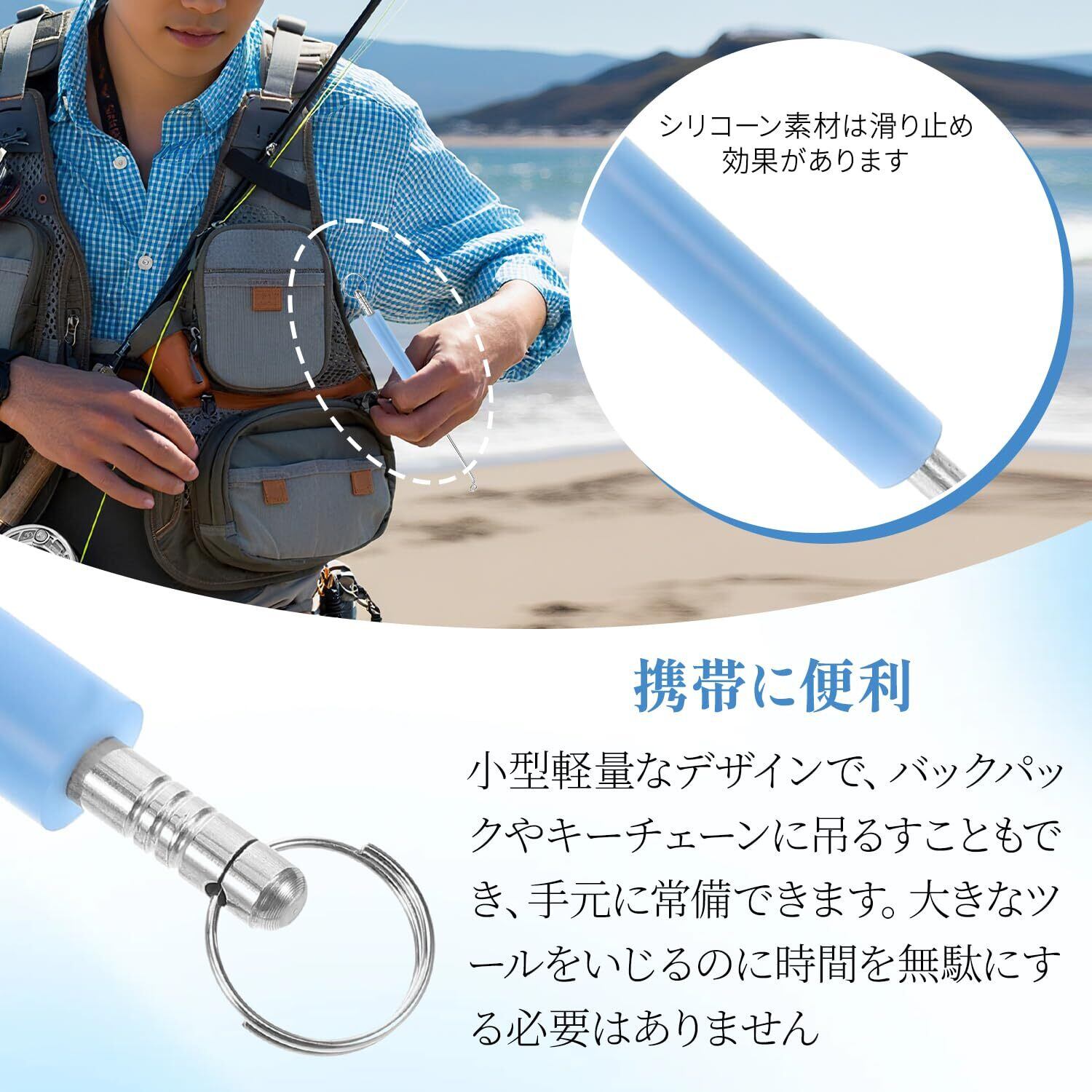 ✨【コンパクトで持ち運び楽々】軽量小型設計のため、ポケットやタックルボックスに収納可能。付属のキーホルダーで釣りベストやバッグに装着すれば、必要な時にすぐに取り出せます。