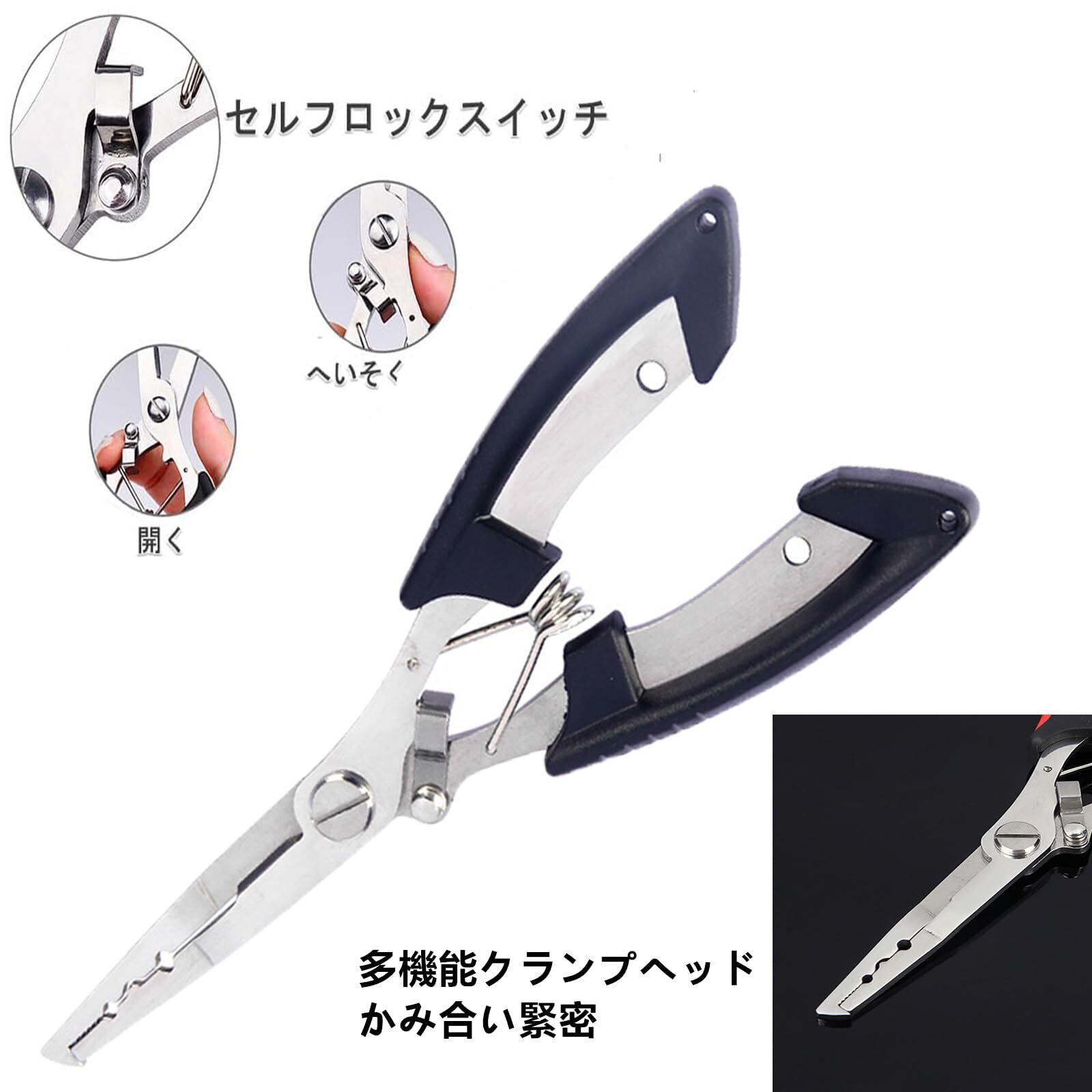 フィッシングプライヤー 釣りペンチ 釣りプライヤー 防錆 ステンレス 針外し フックリリーサー PEライン切れる フックはずし ロック機能付き 軽量 多機能 アウトドア 釣り用