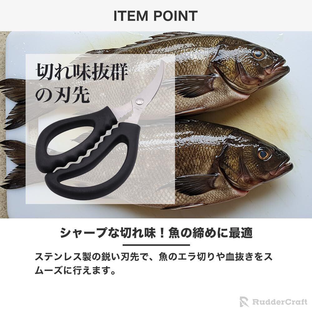 【多用途で使える万能ハサミ】魚の血抜き、エラ切り、捌き、糸切りなど、これ一本で様々な作業に対応。