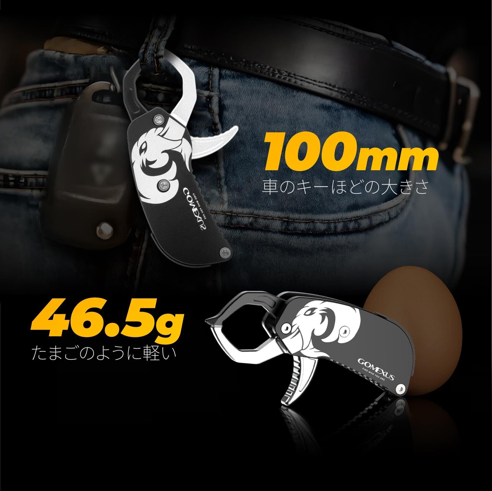 【超軽量】コンパクト設計で持ち運び楽々!重量わずか約46.7g、サイズは10cm×5cmの手のひらサイズで、ポケットやバッグにすっぽり収まります。最適な携帯性を誇ります。釣果の記念撮影に必要の釣り道具となります。