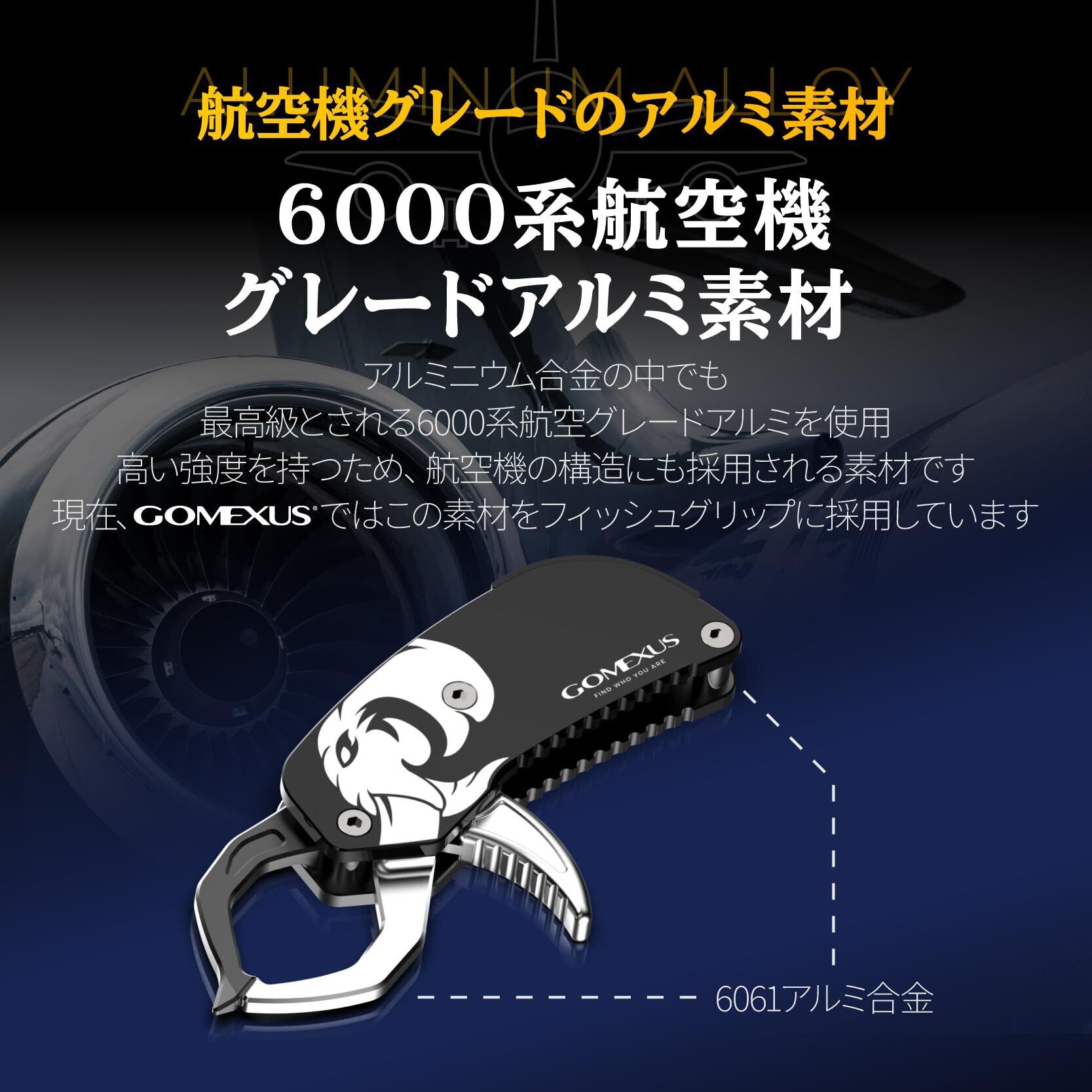 ゴメクサス フィッシュグリップ ミニフィッシンググリップ アルミ製 46.7g 軽量 魚つかみ 耐荷重5kg 中小型のロックフィッシュ ライドゲーム GOMEXUS 堤防 岸壁 磯 釣り具 プレゼント 落下防止ロープ付き