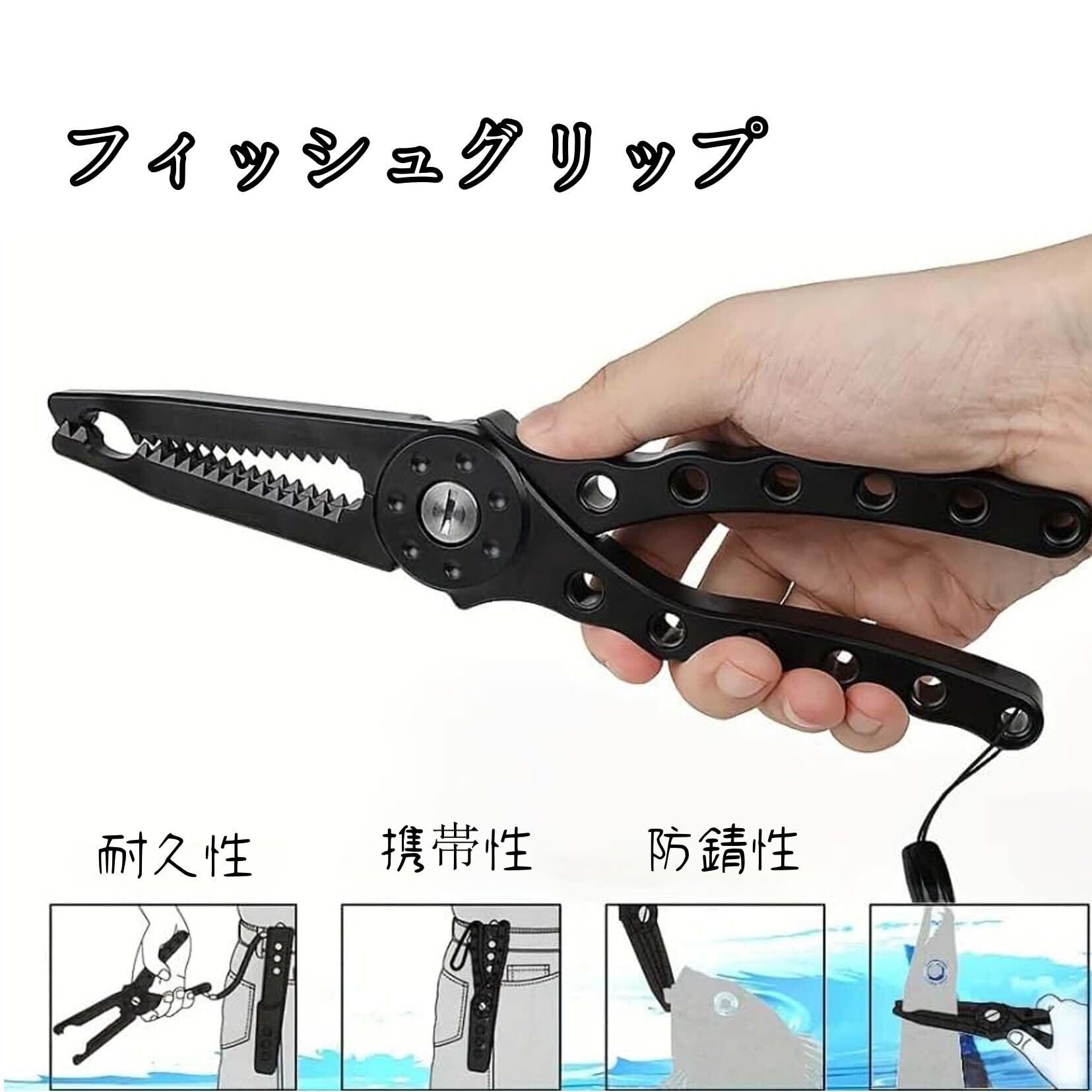 【製品内容】フィッシュグリップ+保護ホルスター+セーフティロープ+カラビナ,サイズ:245×55mm,カラー:ブラック