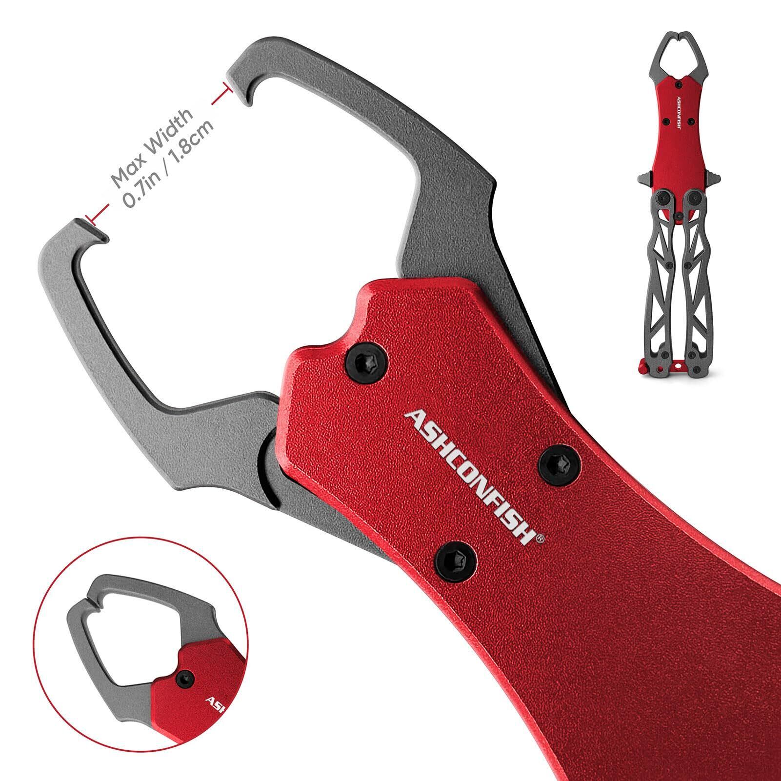 ASHCONFISH フィッシュグリップ PEラインカッター 釣り 軽量 陽極酸化処理アルミ合金 防錆 魚つかみ フィッシュキャッチャー コンパクト ロープ カラビナ付き 紛失防止 海釣り 池釣り 穴釣り