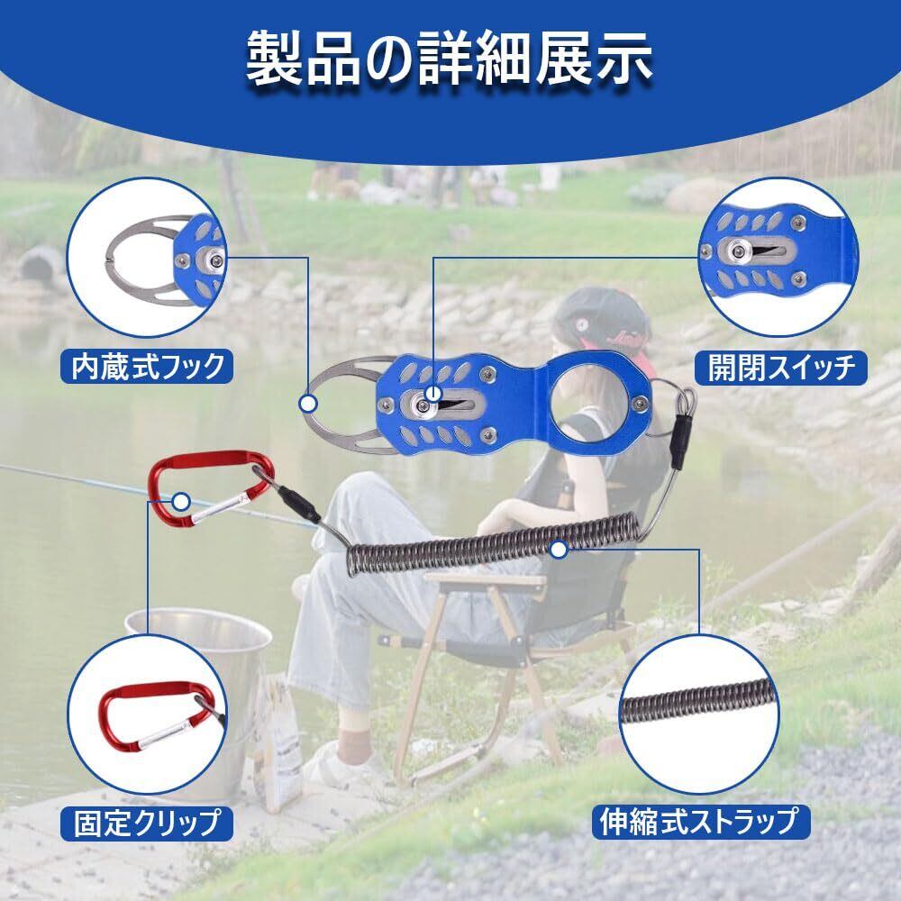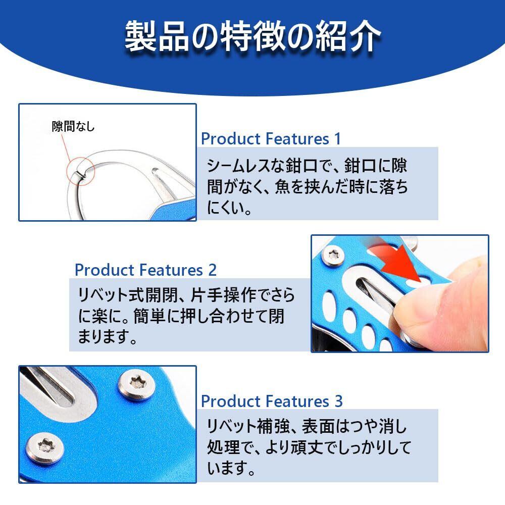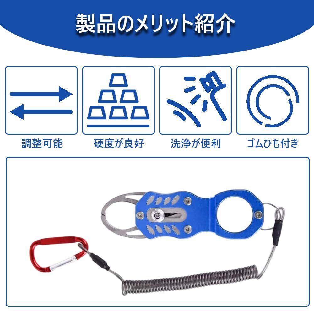 【製品のメリット】 調整可能で硬度良好、洗浄が簡単、ゴムひも付きで紛失防止。 耐食性・防錆性に優れた素材で、耐久性があり長期使用可能。 把持力が強く、魚をつかむ能力に優れ、釣り作業を効率化。