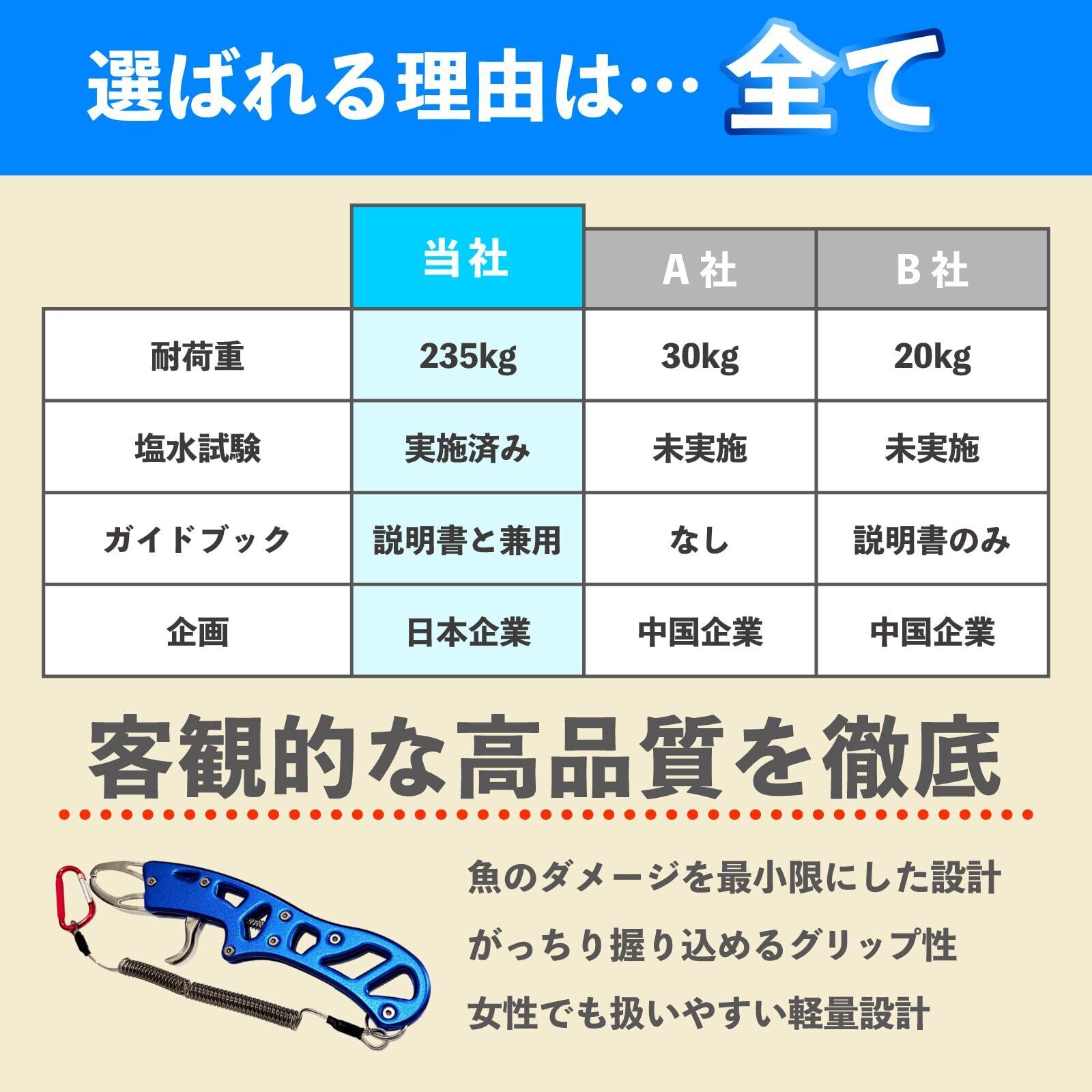 【超強力フィッシュグリップ】ピストル型の魚つかみで手にしっくりと馴染み、握力を効果的に伝えるように設計されています。片手操作も簡単に行えます。