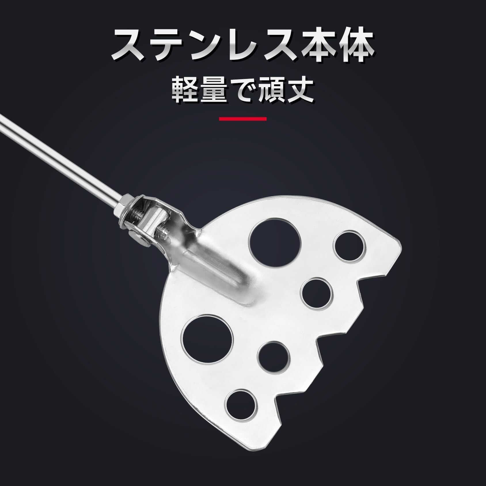 このコマセミキサーは、使いやすさを考慮した木柄ハンドルを採用しています。しっかりとしたグリップ感で、まぜる際にも安定感があり、ストレスなく作業が行えます。