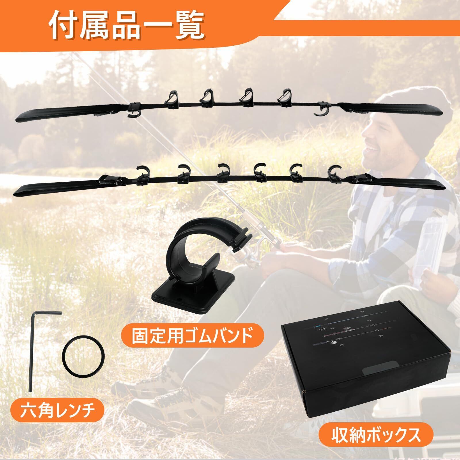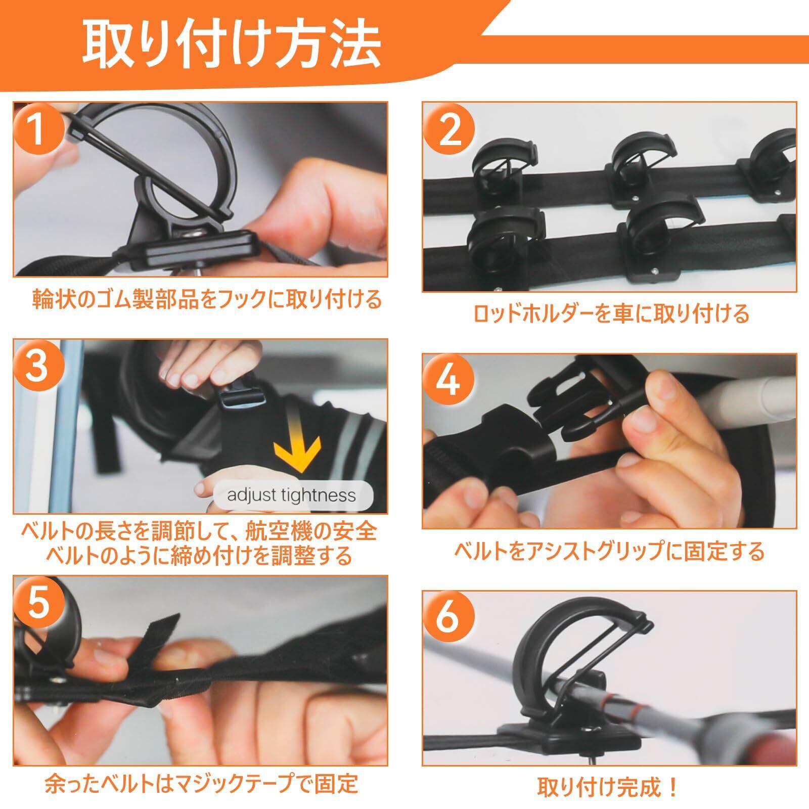 ロッドホルダー 車用 釣り竿収納 釣り道具 ロッドベルト 竿置き 車内 天井 ロッドキャリー ロッドキーパーベルト 設置簡単 説明書付き