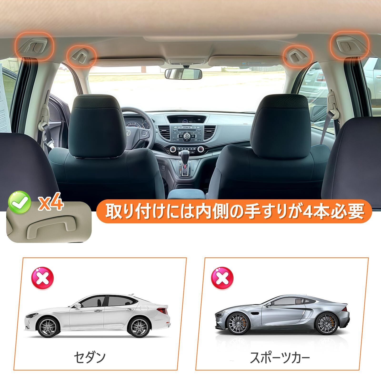 【対応車種】車内のアシストグリップが4箇所あれば対応できます!左右の距離が110cm~155cmまでならOKです! ※※※ ご注文の際は、Tusamikaブランド品であることを必ずご確認ください。正規品とアフターサービスはTusamikaブランドの製品のみとなります。「親子カフェショップ」ブランドの製品は模倣品であり、品質に問題があり、アフターサービスもご利用いただけません。注文前に十分ご注意ください!