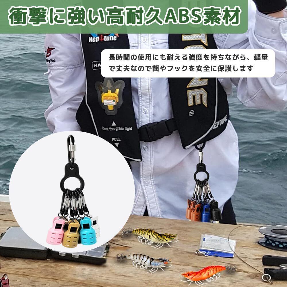 4.【衝撃に強い高耐久ABS素材】耐衝撃性ABSを使用し、変形や破損に強い長寿命設計。鋭いフック先端を確実にカバーし、荷物内での針の折れや誤って刺さる事故を防止。過酷な海釣り環境でも機能を維持します。