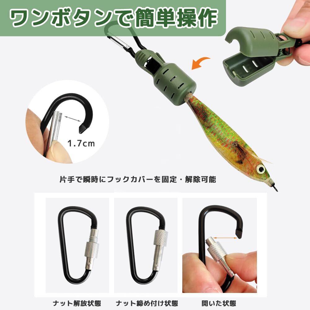 2.【ワンボタンで簡単操作】スプリングバックルを搭載したワンボタン開閉設計。片手で瞬時にフックカバーを固定・解除可能。イカジグの交換がスムーズにでき、釣り時間を無駄にしません。初心者でも直感的に使える使い勝手の良さが特徴です。